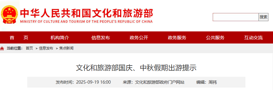2025年國慶、中秋假期即將來臨,9月19日,文化和旅游部發布國慶、中秋假期出游提示。 一、做好行前準備。關注途經地和目的地天氣、交通情況,合理規劃行程。選擇有經營資質的旅行社。不前往未開發開放、缺乏安全保障的區域。密切關注出境游目的地安全形勢和注意事項,不前往高風險地區。 二、加強安全防護。自駕游前確認車況良好,杜絕疲勞駕駛和酒后駕車。駕乘或乘坐機動車出游時,全程系好安全帶。乘坐觀光游船時,按規定穿著救生衣。秋季來臨,旅游過程中要特別注意用火安全,嚴格遵守場所消防及各類安全管理規定。 三、謹慎參與高風險項目。參加直升機觀光等低空、涉水高風險項目前,仔細閱讀項目相關提示,根據個人年齡、健康狀況量力而行。參與活動時聽從工作人員指引,遵守安全操作規范,不做可能危及自身及他人安全的舉動。 四、文明理性出游。遵守法律法規和公序良俗。遵從參觀游覽提示,保護生態環境、愛護文物古跡、愛惜公共設施。關注服務標準和品質,注意辨別旅游攻略信息,理性選擇旅游產品,警惕“不合理低價游”。 |