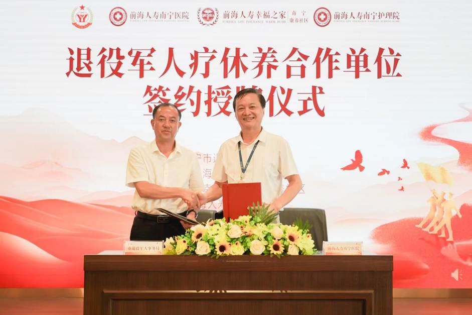 廣西新聞網(wǎng)南寧9月19日訊(通訊員 潘雪冰)為積極拓展退役軍人養(yǎng)老服務(wù)社會(huì)化路徑,南寧市退役軍人事務(wù)局積極推進(jìn)政府引導(dǎo)與市場(chǎng)運(yùn)營(yíng)相結(jié)合的新型服務(wù)模式,9月19日上午,由南寧市退役軍人事務(wù)局和南寧市悅年華頤養(yǎng)公寓、前海人壽醫(yī)院投資南寧有限公司舉行了“退役軍人療休養(yǎng)合作單位”簽約授牌儀式。 南寧市退役軍人事務(wù)局副局長(zhǎng)劉正元在簽約儀式上強(qiáng)調(diào),推進(jìn)軍休養(yǎng)老社會(huì)化服務(wù),是提升退役軍人服務(wù)保障水平、營(yíng)造全社會(huì)尊崇軍人職業(yè)氛圍的重要舉措。此次合作旨在整合優(yōu)質(zhì)社會(huì)資源,發(fā)揮企業(yè)在康養(yǎng)服務(wù)方面的專業(yè)優(yōu)勢(shì),為退役軍人提供更精細(xì)化、多元化、高品質(zhì)的療休養(yǎng)服務(wù),真正實(shí)現(xiàn)“讓退役軍人成為全社會(huì)尊重的人”。簽約揭牌的兩家企業(yè)均表示,成為“退役軍人療休養(yǎng)合作單位”不僅是一項(xiàng)榮譽(yù),更是一份社會(huì)責(zé)任,將充分發(fā)揮自身在醫(yī)養(yǎng)結(jié)合、康養(yǎng)服務(wù)等領(lǐng)域的專業(yè)特長(zhǎng),為退役軍人提供優(yōu)先、優(yōu)質(zhì)、優(yōu)惠的服務(wù),切實(shí)增強(qiáng)廣大退役軍人的榮譽(yù)感、獲得感和幸福感。 此次簽約標(biāo)志著南寧市在退役軍人養(yǎng)老服務(wù)社會(huì)化方面又邁出關(guān)鍵一步。未來(lái),南寧市退役軍人事務(wù)局將繼續(xù)擴(kuò)大社會(huì)合作,積極引入社會(huì)力量,共同推動(dòng)退役軍人服務(wù)保障工作高質(zhì)量發(fā)展。 退役軍人療休養(yǎng)合作單位簽約授牌儀式現(xiàn)場(chǎng)。 南寧市退役軍人事務(wù)局副局長(zhǎng)劉正元與南寧市悅年華頤養(yǎng)公寓頤養(yǎng)社區(qū)總經(jīng)理梁麗麗現(xiàn)場(chǎng)簽約。 南寧市退役軍人事務(wù)局副局長(zhǎng)劉正元與前海人壽南寧醫(yī)院、康養(yǎng)社區(qū)、護(hù)理院院長(zhǎng)林輝現(xiàn)場(chǎng)簽約。 |