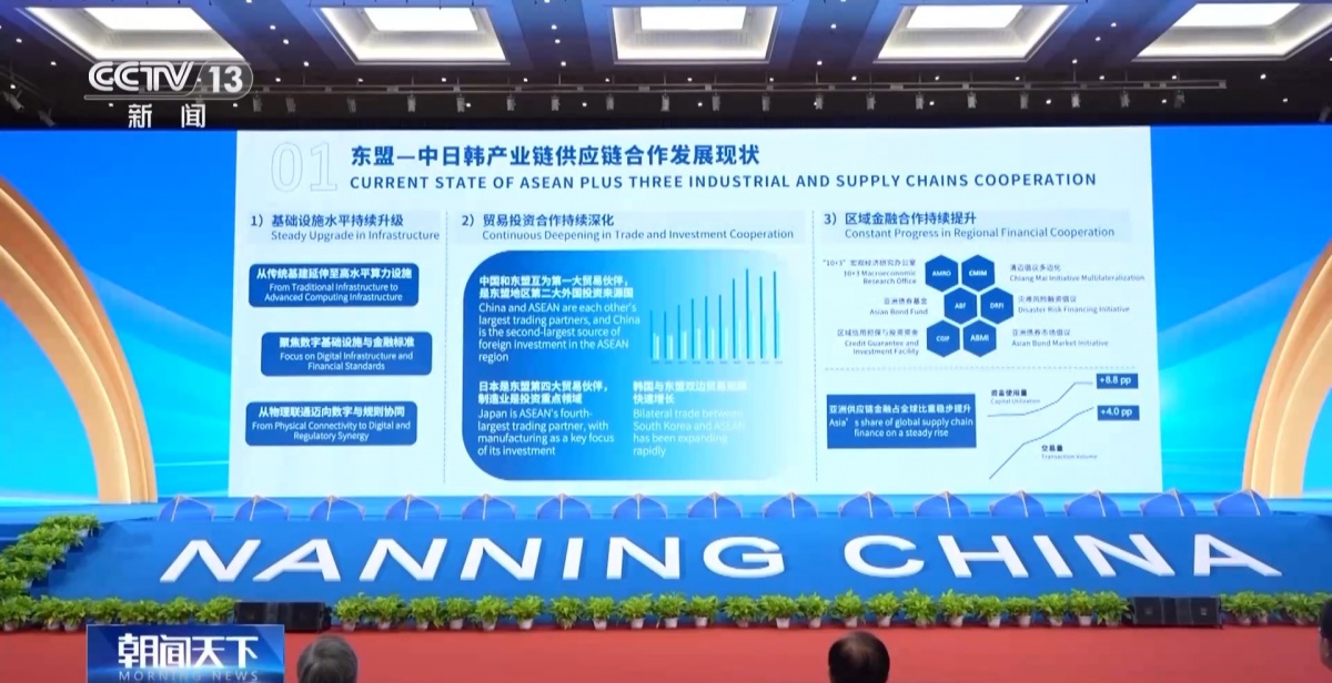 第22屆中國—東盟博覽會正在廣西南寧舉行,期間舉辦了多場論壇和經貿洽談活動,推動中國和東盟國家加強區域協同,共促區域產業鏈供應鏈合作。 本次中國—東盟博覽會期間,多國嘉賓圍繞“RCEP和中國—東盟自貿區的3.0版協同發展”進行洽談交流。 商務部國際貿易經濟合作研究院院長 王雪坤:要發揮好RCEP(區域全面經濟伙伴關系協定)的重要作用,不筑關稅高墻,不設隱性壁壘,保持我們的貨物、服務、投資的高水平開放。 泰國大數據研究院院長兼首席執行官 提拉尼·阿扎拉坤:我認為開展此類RCEP對話有助于深化各方協作,使我們能夠就應對區域共性挑戰,展開信息交流與對策研討。 東盟與中日韓(10+3)是全球經濟最具活力的區域之一。在東盟—中日韓產業鏈供應鏈對接大會上,來自中國的金融企業搭建平臺,聚焦先進制造、清潔能源、綠色農業等八大領域,推動各方交流對接。 中國工商銀行廣西分行黨委委員 方怡:深化與東盟國家的金融機構、企業的合作力度,在金融領域開展人工智能場景共創。 此外,活動現場還發布了《東盟—中日韓產業鏈供應鏈合作發展報告》,倡議各方繼續加強機制協同與規則對接,共同構建更穩定、高效和綠色的區域產業鏈供應鏈體系。 |