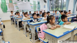 上午8時30分,活動在莊嚴的國歌聲中啟動。五年級和六年級的全體學生齊聚主會場,會場周圍擺放著精心制作的活動宣傳展板,以圖文并茂的形式展示邊海防法律法規要點。而該校其他班級則在教室內統一觀看了“桂防仔邊海防法律法規知識”視頻短片。這種點面結合、線上線下聯動的方式確保了普法教育全覆蓋,讓全校師生都能參與到這場有意義的活動中。