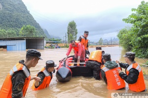 9月30日11時(shí)00分,武警廣西總隊(duì)百色支隊(duì)官兵聞令而動(dòng),依據(jù)預(yù)案出動(dòng)11名官兵,攜帶救援艇、救生衣等各類搶險(xiǎn)救援裝備若干,采取摩托化方式機(jī)動(dòng)前往受災(zāi)地域,協(xié)助當(dāng)?shù)乜h政府擔(dān)負(fù)搶險(xiǎn)救災(zāi)任務(wù)。