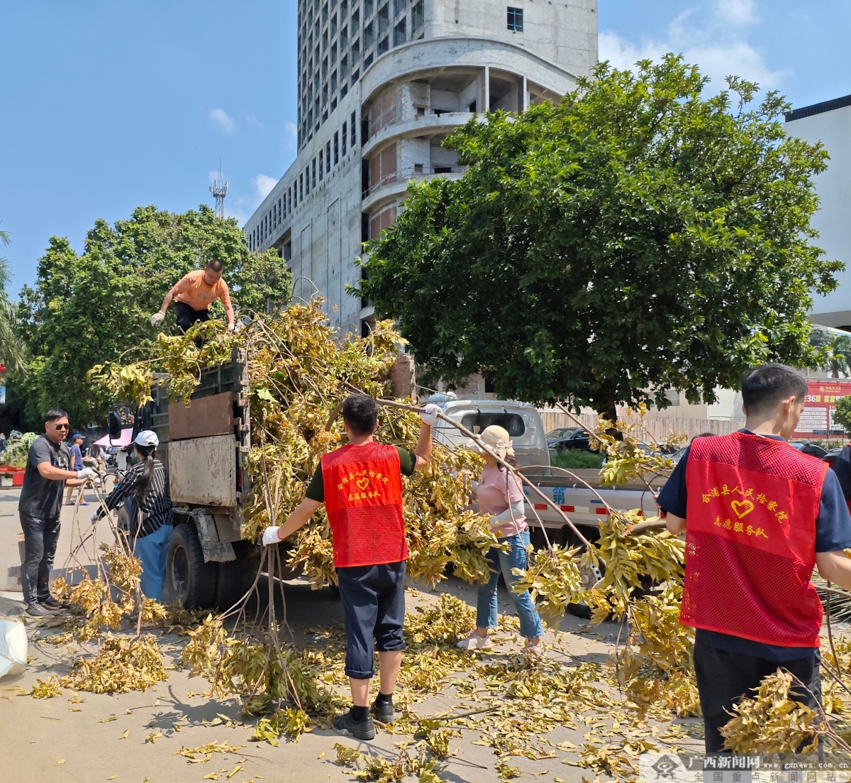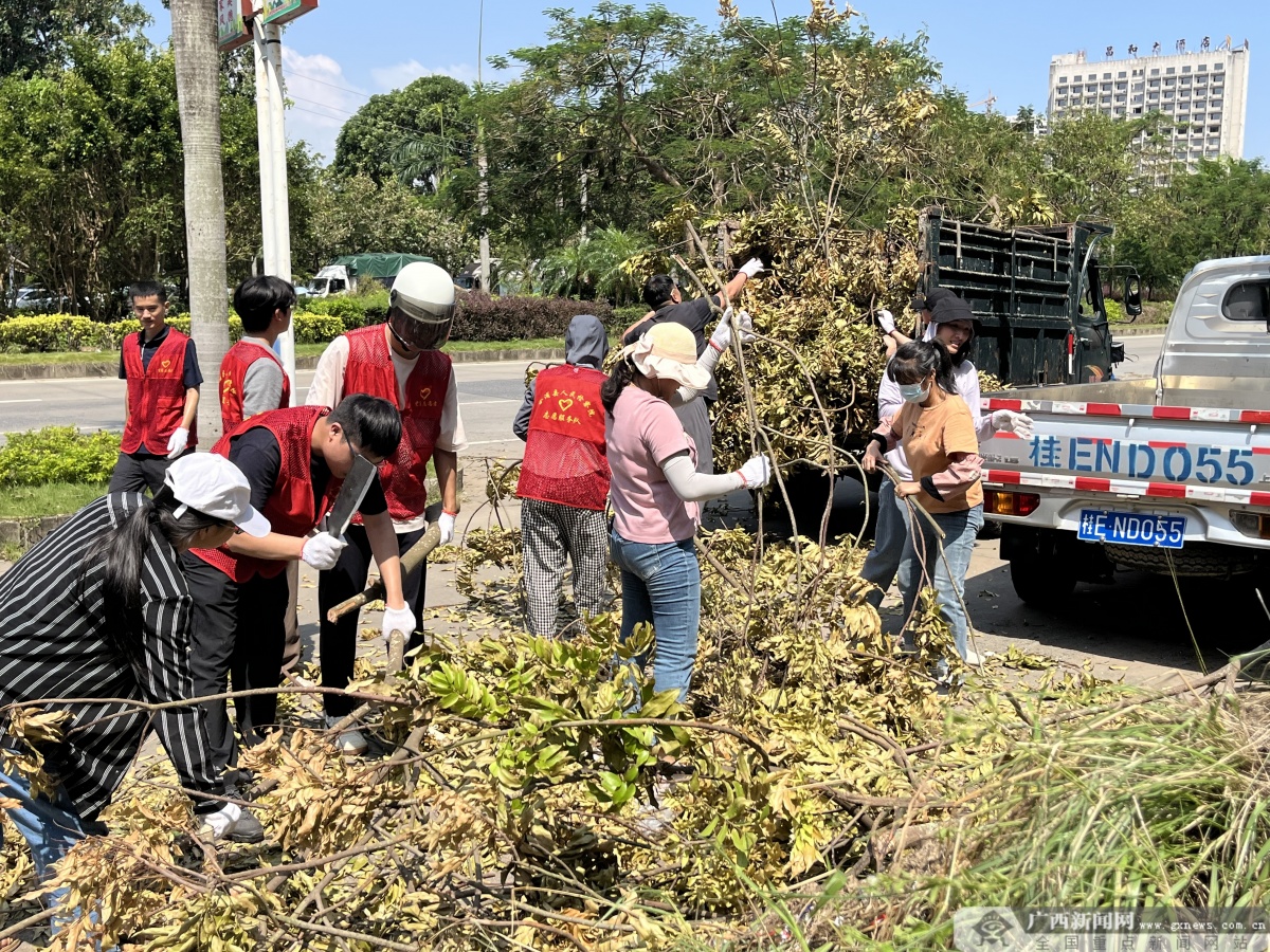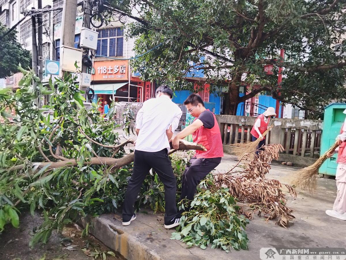 倒伏殘枝清運(yùn)。通訊員 余擁軍 攝 10月7日、8日,合浦縣檢察院出動(dòng)黨員干部218人次,投入災(zāi)后恢復(fù)重建和生產(chǎn)自救。10月5日,第21號(hào)臺(tái)風(fēng)“麥德姆”正面突襲合浦,中心附近最大風(fēng)力13級(jí),全縣受災(zāi)嚴(yán)重。災(zāi)情就是命令,合浦縣檢察院聞“風(fēng)”而動(dòng),根據(jù)縣委部署,立即全員中止休假返崗,參與3個(gè)責(zé)任區(qū)7條街道清淤排障、倒覆殘枝清運(yùn)和垃圾障礙清理,共計(jì)清理垃圾16噸,清掃街道4.9公里,全力恢復(fù)家園。 |