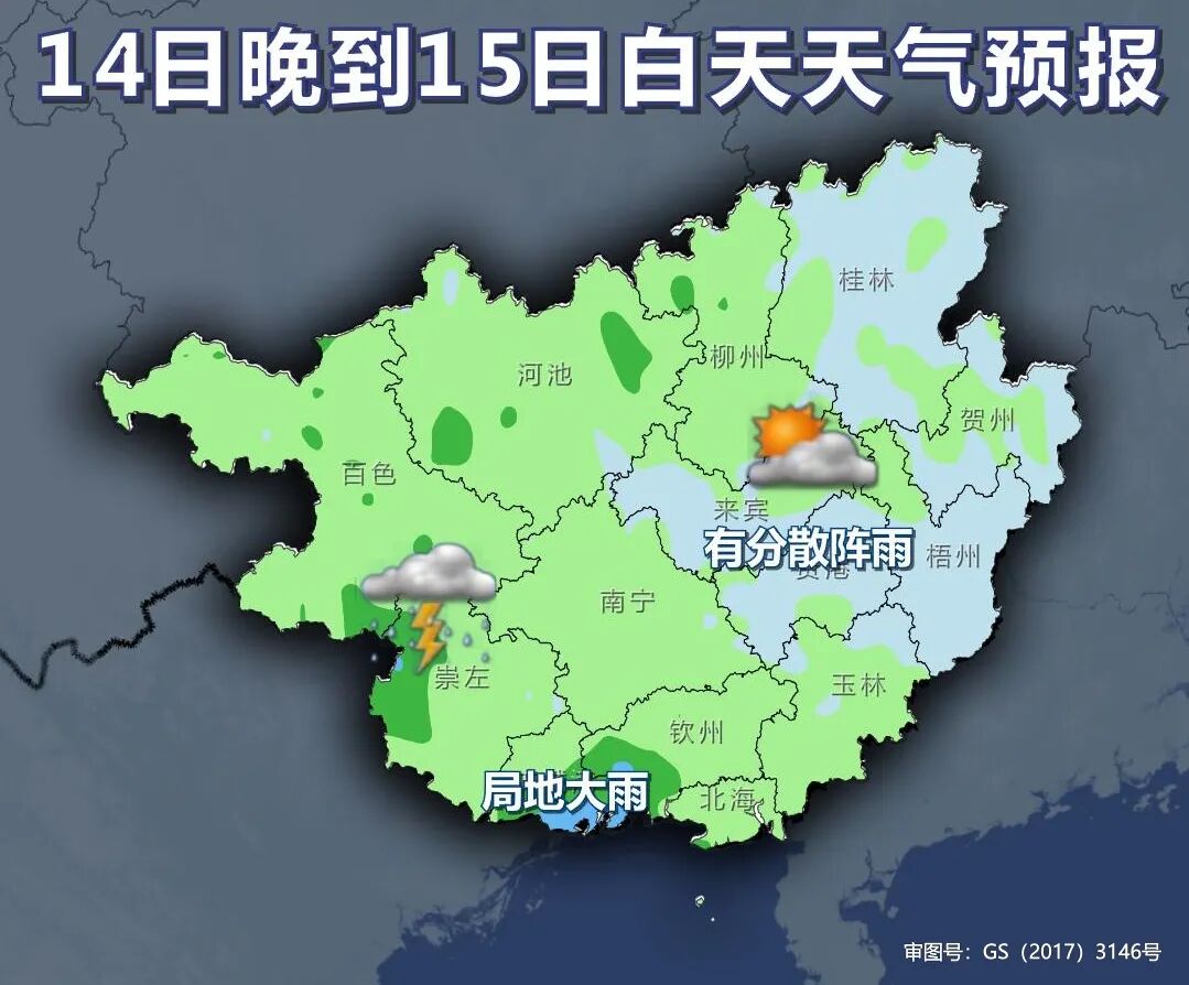 13日南寧的天空。記者 周 映 攝 今日(13日)冷空氣已到貨,寶子們是否感覺到一丟丟冷了呢? 問:冷空氣有沒有? 答:有,但不太能感覺到。可還滿意? 今日弱冷空氣滲透南下影響廣西,廣西將逐步從晴熱天切換至“降雨模式”。 生活無可挑剔。預計,13日白天到晚上,桂東、桂南部分地區有中雨、局地大雨或暴雨,我區其他地區陰天有陣雨或雷雨、局地大雨;14日,桂南、桂西部分地區有中雨、局地暴雨,其他地區多云到陰天有陣雨或雷雨;15日,廣西雨水減弱,桂西、桂南有陣雨或雷雨。正值2025年環廣西公路自行車世界巡回賽期間,需提前防范降雨降溫對比賽的不利影響。 氣溫方面,在冷空氣與降雨的共同影響下,13—14日,全區大部地區降溫2℃—4℃,最高氣溫將降至30℃以下,廣西的暑熱感將有所消退。尤其是14日白天,桂北、桂西大部最高氣溫基本都將降至26℃—29℃,桂林、河池、百色3市局地最高氣溫甚至只有24℃—25℃。 桂北地區早晚時段的涼意會有所加重,晝夜溫差拉大,要適時增添衣物,以防著涼感冒。 還有,出門傘隨身,遮陽擋雨兩不誤。 13日晚到14日白天天氣預報。來源:自治區氣象局 14日晚到15日白天天氣預報。來源:自治區氣象局 不過這股冷空氣實力太弱,在廣西的“待機時長”有限,其帶來的降溫降雨也有限。預計14日晚到15日白天,降雨就將逐漸減弱,除了桂西和沿海部分地區有陣雨或雷雨、局地大雨來擾,其他地區都以多云有分散陣雨天氣為主,16—17 日降雨逐漸減弱。隨著降雨減弱,屆時廣西大部最高氣溫又將回升至30℃以上。 另外,預計17日晚到19日又有一股較強冷空氣來襲。受其影響,各地氣溫下降幅度:桂東北4℃—6℃、局地8℃,其他地區2℃—4℃。冷空氣過境時,全區大部有4—5級、陣風6—7級偏北風。 當下已經進入寒露節氣,寒露以后,北方冷空氣已有一定勢力。這個時節,廣西的夏天和秋天開始互相拉扯,雨水幫襯秋天,陽光靠向夏天。雖然廣西還沒有達到氣候學標準的秋季,白天晴熱依舊,但這種熱已經和夏天正經八百的悶熱不同了,晝夜溫差已經一點點拉大了,早晚隱隱感覺到一丟丟的秋意了。 隨著南下冷空氣影響的頻率增多,廣西的秋季就慢慢鋪展開來了。 有關冷空氣,這些知識你要知道↓↓↓ 有關冷空氣,這些知識要知道!來源:中國氣象報 |