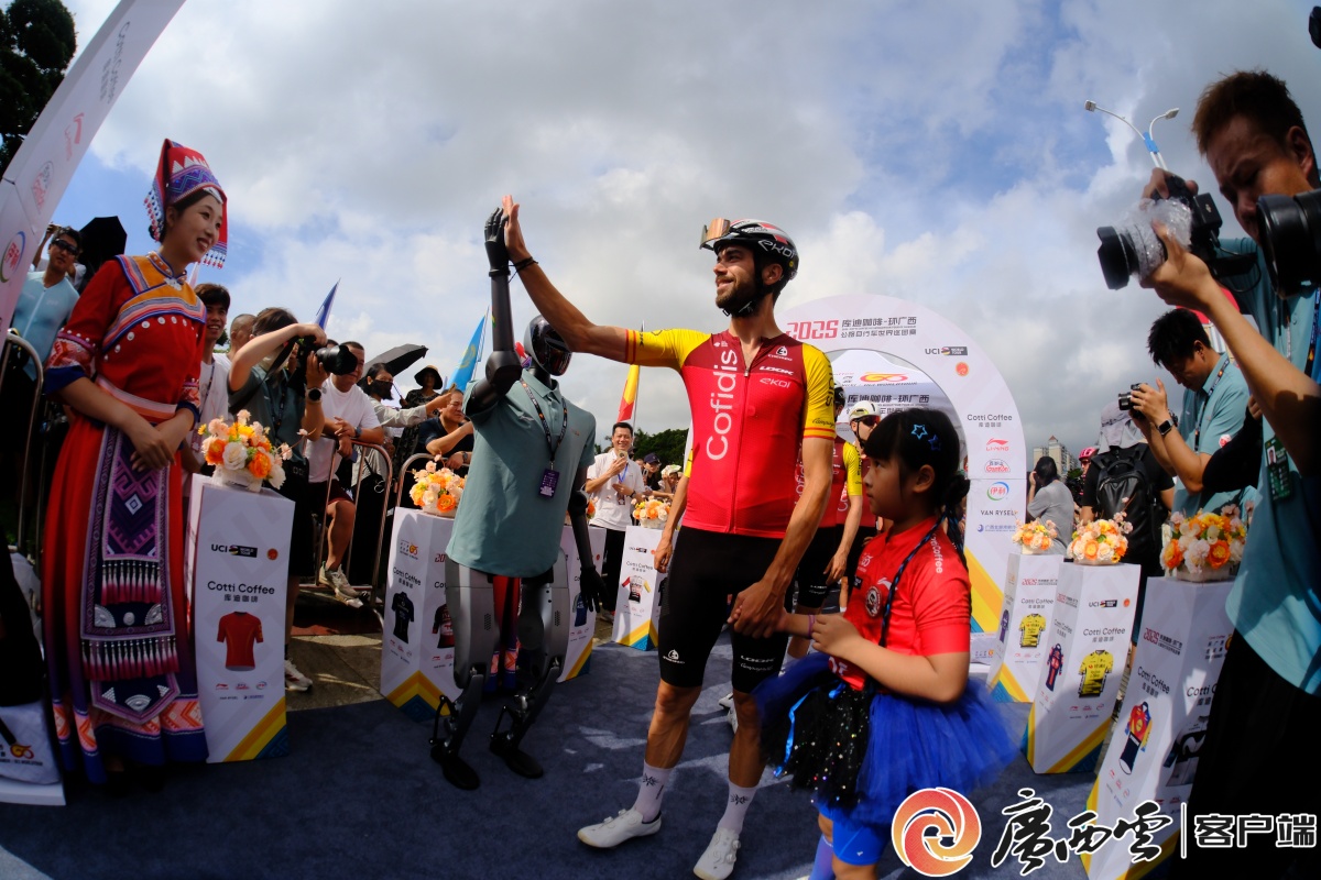 視頻攝制:金翔義 八桂大地再次開啟世界頂級公路自行車賽!10月14日,2025年環廣西公路自行車世界巡回賽(下稱環廣西世巡賽)在防城港市拉開序幕,快步車隊車手保羅·馬涅在第一賽段的激烈角逐中脫穎而出,成為首個賽段冠軍。在為期6天的賽程里,20支車隊將跨越廣西6市,在如畫風光中繼續展開輪上速度與激情的較量,最終決出賽段總冠軍。 10月14日,2025年環廣西公路自行車世界巡回賽鳴槍開賽。 環廣西世巡賽是國際自行車聯合會(UCI)世巡賽賽季的收官之戰,本屆賽事共6個賽段,依次為防城港城市賽段、崇左—靖西賽段、靖西—巴馬賽段、巴馬—金城江賽段、宜州—弄拉景區賽段及南寧城市賽段,競賽總距離為1017.1公里。 來自世界各地的車手們展開激烈角逐。 當日上午11時許,賽事在北部灣海洋文化公園正式開啟。目前世界排名前三的阿聯酋航空-XRG車隊、維斯瑪-麗思拜克車隊、歷德-崔克車隊在內的17支世巡賽車隊、2支PRO職業車隊(級別僅次于世巡賽車隊)及中國國家隊就此開啟第一賽段爭奪。 許多市民前來為車手加油助威。 第一賽段以北部灣海洋文化公園為競賽起終點繞行4圈,單圈競賽距離38公里,總競賽距離148.8公里,沿途以濱海城市風光為主。快步車隊車手保羅·馬涅在團隊護送下發起沖刺并率先撞線,成為本屆環廣西世巡賽首個賽段冠軍。 保羅·馬涅奪得本屆環廣西世巡賽首個賽段冠軍。 “非常開心!廣西的山水都很美,這是一段完美的賽程。”賽后保羅·馬涅表示,“雖然這里(廣西)沒有很多人說英語,但是在最后沖刺的時候聽到大家的歡呼聲以及大家對我熱情洋溢的態度,我很開心,也很享受。” 車手與AI機器人擊掌。 明日(10月15日),車隊將轉場崇左,開啟崇左—靖西賽段爭奪。 |