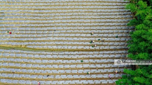 10月12日,梧州市蒙山縣蒙山鎮的一家絲綢企業的曬場內,工人們趁天氣晴朗,忙著翻曬、卷收香云紗。通訊員 林志清 攝(廣西云-廣西日報)