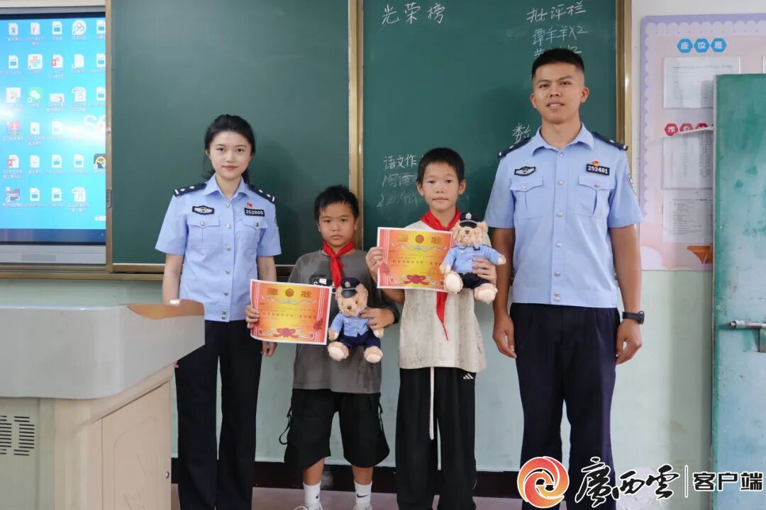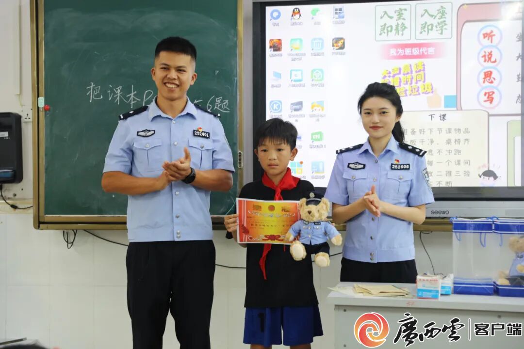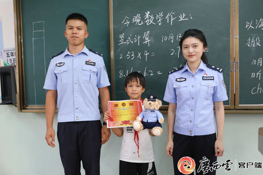 素材來源:來賓公安 10月13日,金秀瑤族自治縣桐木中心小學南校區教室掌聲如潮,桐木派出所民警專程來到校園,為陸首軒、黃通旺、駱澤政、黃文博四位同學頒發“拾金不昧好少年”榮譽獎狀及定制警察小熊。 民警為拾金不昧少年進行頒獎。 這場特別的頒獎儀式,源于五天前孩子們在街頭完成的暖心交接。10月8日,這四位小學生在桐木鎮慶達購物廣場附近發現一臺遺失的平板電腦。面對意外財物,他們毫不猶豫選擇守護失主權益,小心翼翼守護現場的同時,立即決定將設備交予警方處理。當民警趕到現場時,孩子們迫不及待上前完成這場“沉甸甸”的信任托付。民警將設備帶回派出所后,通過多方查找最終成功聯系上失主歸還這件電子設備。 少年將拾到的電子設備交予警方。 在頒獎現場,熱烈的掌聲不僅是對四位少年的褒獎,還是一堂生動的德育實踐課。桐木派出所通過這種儀式感滿滿的方式,既肯定了小公民的社會責任感,也強化了警校聯動的教育效果。目睹頒獎全程的師生們表示,將以身邊榜樣為鏡,在日常學習生活中踐行誠實守信的優良傳統。 身邊同學為拾金不昧少年鼓掌。 這場由警民攜手完成的道德接力,既展現了新時代少年兒童的精神風貌,也體現了基層公安機關在社會治理中的溫情擔當。從街頭拾金不昧到校園榮譽表彰,社會主義核心價值觀在具體實踐中得以深化,為構建和諧社區注入青春正能量。 |