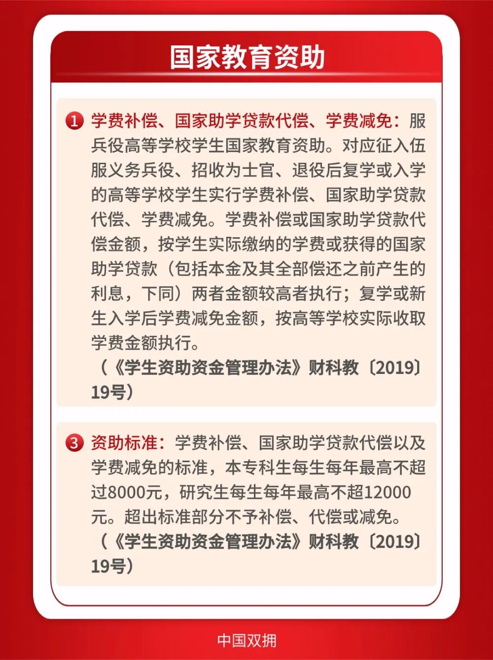想參軍的大學生注意了! 大學生入伍優待政策你知道嗎? 服現役期間保留入學資格或者學籍 退役后兩年內允許入學或者復學 …… 讓你既能圓軍營夢 也能順利完成學業 大學生入伍所關心的 優待、學歷、資助、就業和選拔培養 等全國性政策一圖看懂 ↓ ↓ ↓ 不止國家層面的法律法規 各地也紛紛出臺了相關政策 以實際行動支持大學生入伍 這些實實在在的優待政策 既是國家對參軍大學生的關懷與保障 更是對青年學子投身國防的激勵與召喚 有軍旅夢的你可千萬別錯過~ |