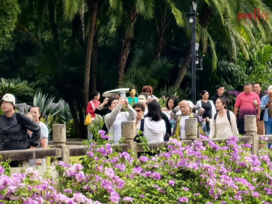 園林科技園內,市民競相打卡蒜香藤。通訊員 廖宏偉 周海將 攝 在河東公園,一面紫色花墻驚艷亮相,如瀑如綢的紫花傾瀉而下,引得市民紛紛駐足拍照。在花墻前,許多市民正擺出各種姿勢拍照,“朋友圈一發,大家都問這是哪里!”市民余女士笑著展示她拍攝的照片,“這種紫色太夢幻了,怎么拍都出片。”