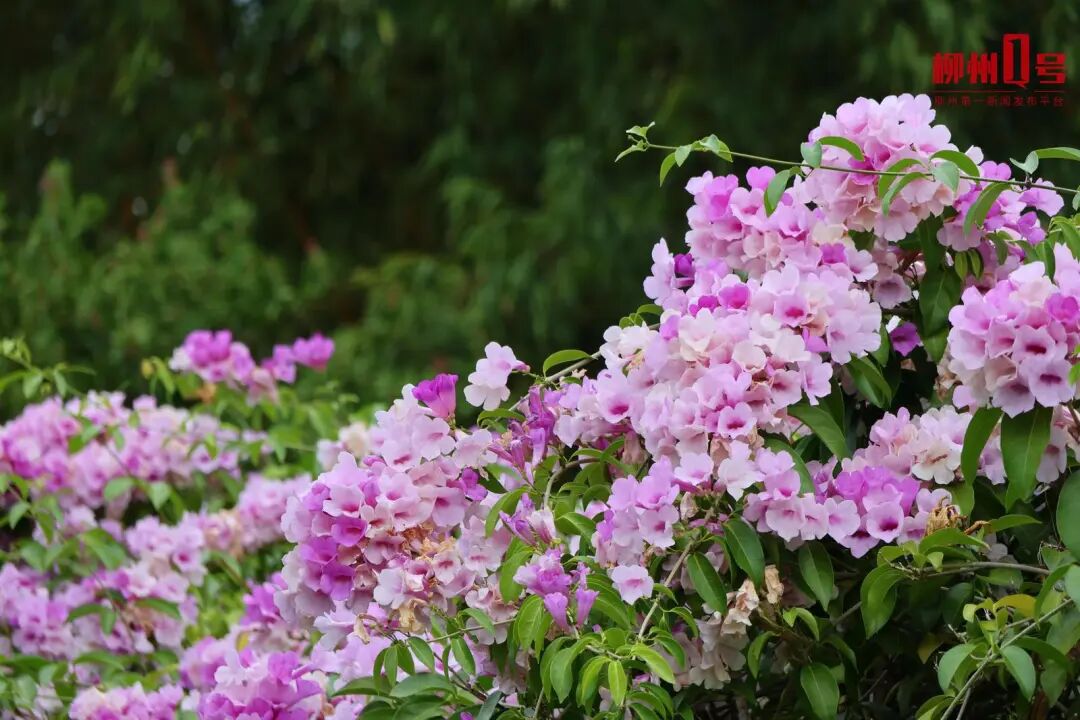 深秋的柳州 市區多地蒜香藤迎來盛花期 為城市增添了一抹浪漫的紫色