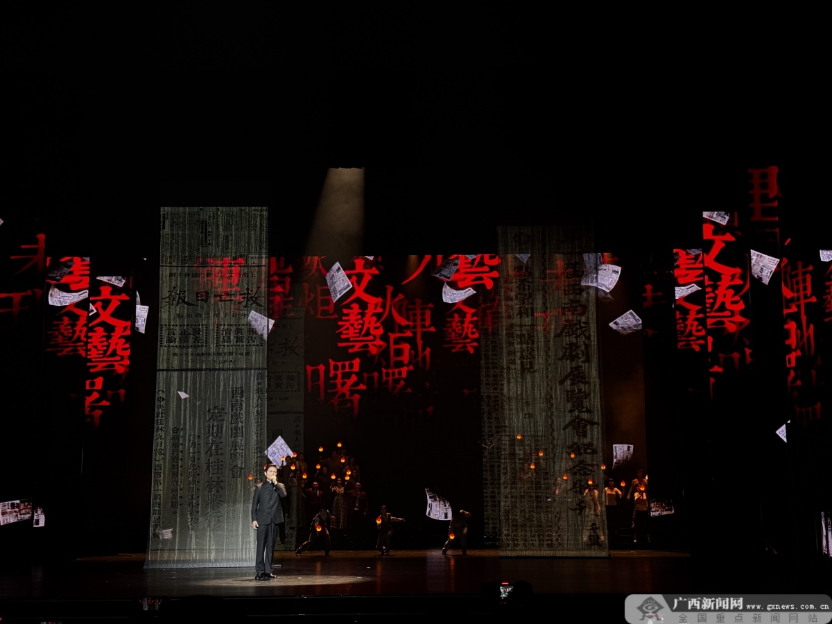 2025桂林藝術節開幕式現場。 10月24日,2025桂林藝術節在漓江歌劇院正式啟幕。本次開幕式突破傳統典禮形式,以兼具歷史縱深與時代精神的“烽火”“新生”“共鳴”三大戲劇化篇章,將戲劇、音樂、舞蹈、傳統工藝、科技創新融合,在山水環抱的現代化劇場中,為觀眾呈現了一場藝術盛宴。為期十天的藝術節由此拉開帷幕。