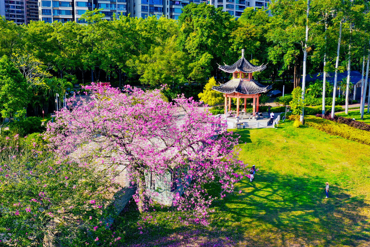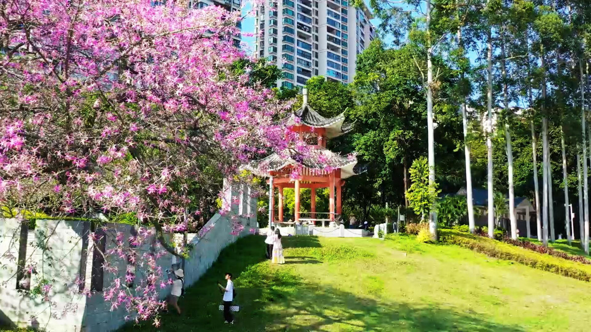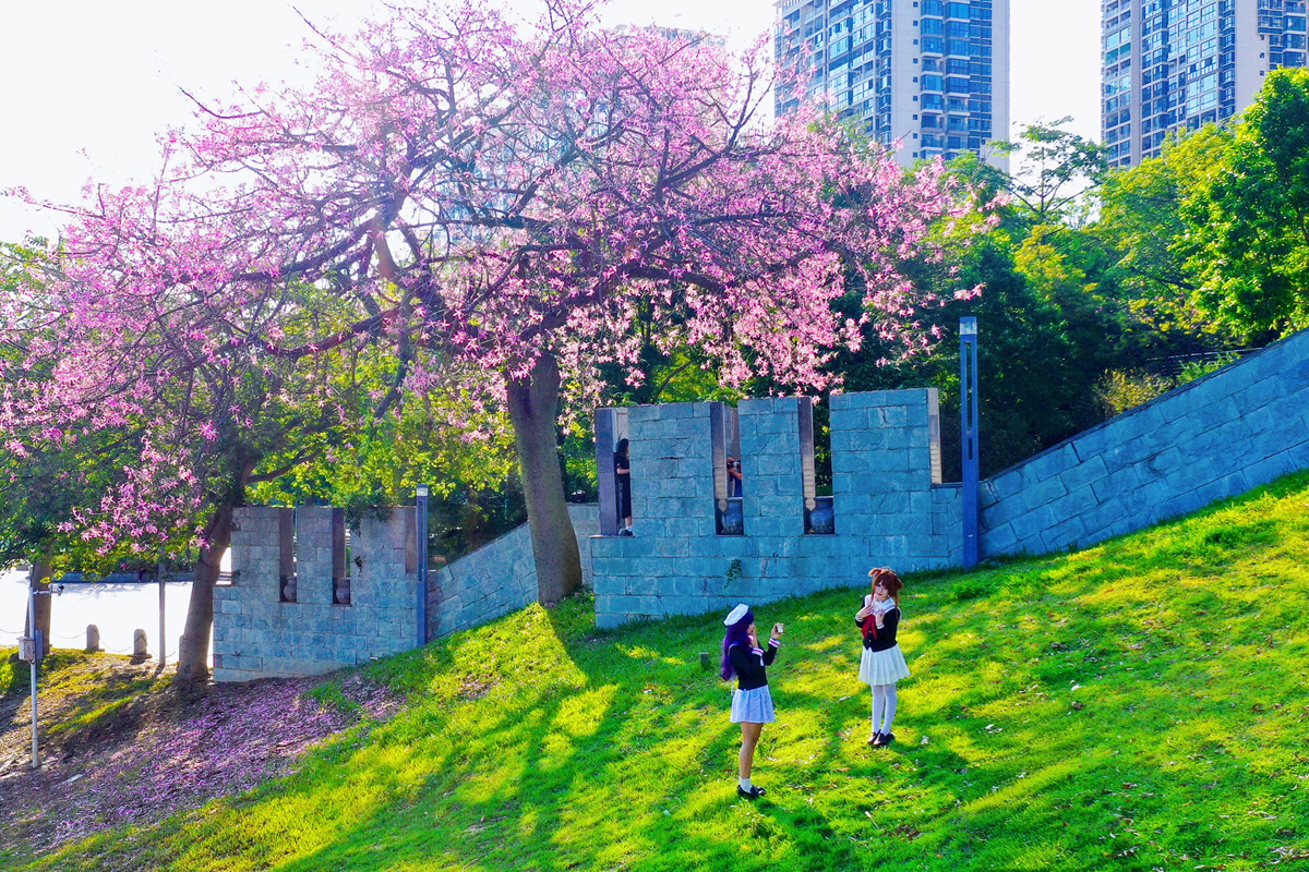 風搖萬點粉云輕。記者 杜佳徽 攝 不止賞花,南寧江畔邊還能收集各種秋日野趣,不論是鋪露營墊,賞花品美食兩不誤,還是在公園步道騎行,一邊賞美景一邊感受迎面拂來的清風……花期不等人,想要免費賞花、打卡的市民可以前往邕江北岸公園天音亭即可看到這棵浪漫的異木棉,讓我們一起赴一場邕江邊的粉色約會吧。