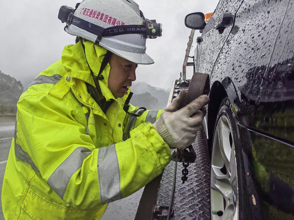 圖為應急排障員冒雨拖車作業。廣西交投桂林高速臨桂分公司 供圖 織密汛期安全防線 防汛是高速公路運營的年度重點任務,臨桂分公司黨支部以“功能黨小組”為引領,構建“黨建+防汛”工作模式——將黨組織的組織優勢轉化為防汛攻堅的統籌力,明確“預防為主、防治結合”原則,黨員帶頭落實防汛責任,確保汛期道路安全暢通。小組創新推行“立體排查模式”:橫向聯動氣象、水利部門獲取預警信息,縱向由業務部門黨員分片負責路段排查,重點針對排水溝、涵洞、邊坡等易積水、易滑坡區域開展“拉網式”檢查。建立24小時輪值機制,防汛小組成員隨時待崗。2025年主汛期,“功能黨小組+防汛工作小組”24小時輪值,累計接收氣象預警信息73次并第一時間響應。小組累計開展巡查73次,總里程達36704公里,清理排水溝等排水設施68.07公里,圓滿實現安全度汛零事故目標。