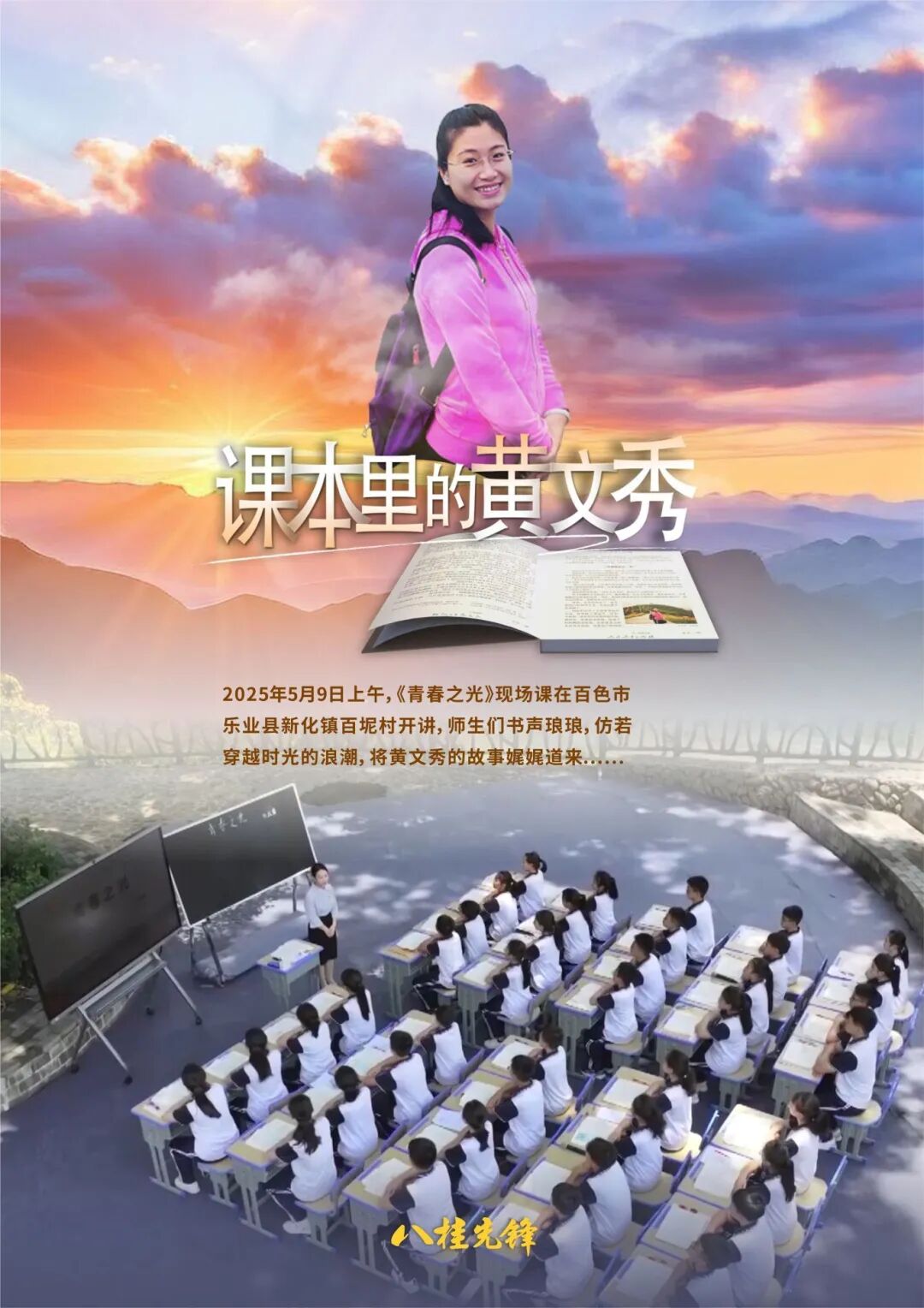2025年5月9日上午,教育部教材局、人民教育出版社等單位聯合主辦的《青春之光》現場課在這里開講,國內教育界專家學者以及當地中學師生代表相聚在黃文秀生前工作過的這片熱土上,通過現場教學《青春之光》課文,實踐探索新時代語文教材編寫和教學的創新改革。這瑯瑯讀書聲,仿若穿越時光的浪潮,將黃文秀的故事娓娓道來...... 黃文秀以“不獲全勝,決不收兵”的勇氣和魄力,帶領貧困群眾脫貧致富。2019年6月17日凌晨,黃文秀從百色返回百坭村的途中遭遇山洪不幸遇難,30歲的生命永遠定格在扶貧路上。