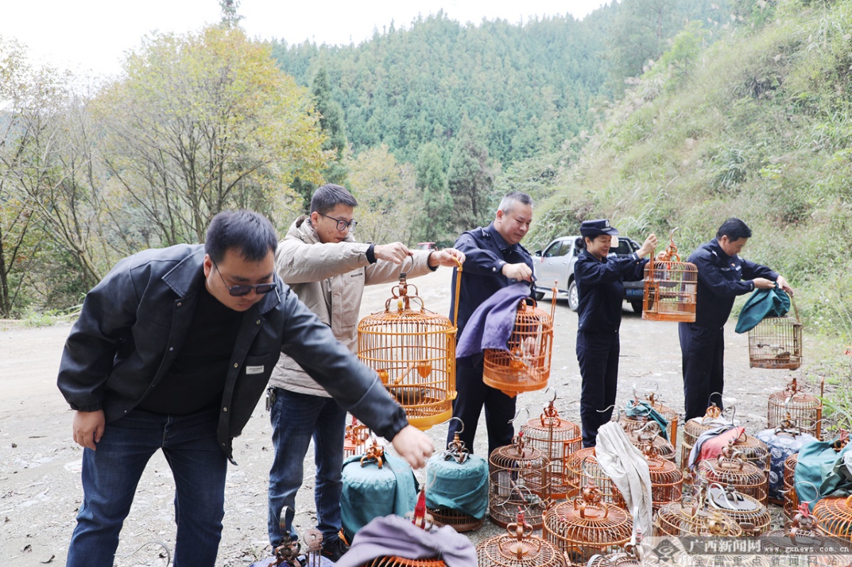 廣西新聞網河池11月18日訊(記者 江宏坤 通訊員 覃玉早 蘭茗)“撲棱棱……”伴隨著一陣羽翼振動聲,51只羽毛油亮、鳴聲清脆的畫眉鳥,在公安民警與林業部門工作人員的護送下,依次飛出轉運籠,奔向郁郁蔥蔥的山林。