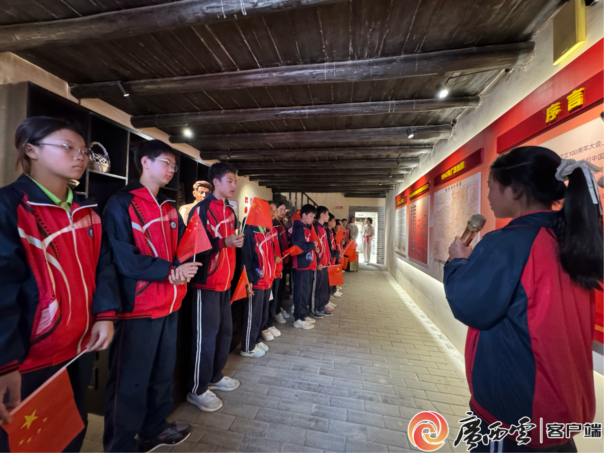 紅領巾講解員解說天馬運輸行序廳。 沿著熱鬧的街巷前行,記者走進天馬運輸行。這座南方圩鎮典型的“竹筒房”青磚黛瓦依舊,修舊如舊的展陳還原了當年風貌。“別看它現在安安靜靜,當年這里可是‘熱鬧得很’。”10歲的紅領巾講解員劉芝琳聲情并茂地解說,引得游客駐足。1943年初至1947年8月,作為中共廣西省工委機關及交通總站,它在“七九”事件后廣西黨組織遭受重創時,承擔著情報傳遞、人員轉移、物資運送等關鍵任務,猶如隱蔽戰線上的“紅色血脈”,為廣西革命斗爭的持續開展提供了堅實保障。記者在現場看到,不少家長帶著孩子認真參觀展覽、觀看紅色黨史微電影,孩子們不時駐足提問,眼神中充滿了對革命先輩的崇敬之情。