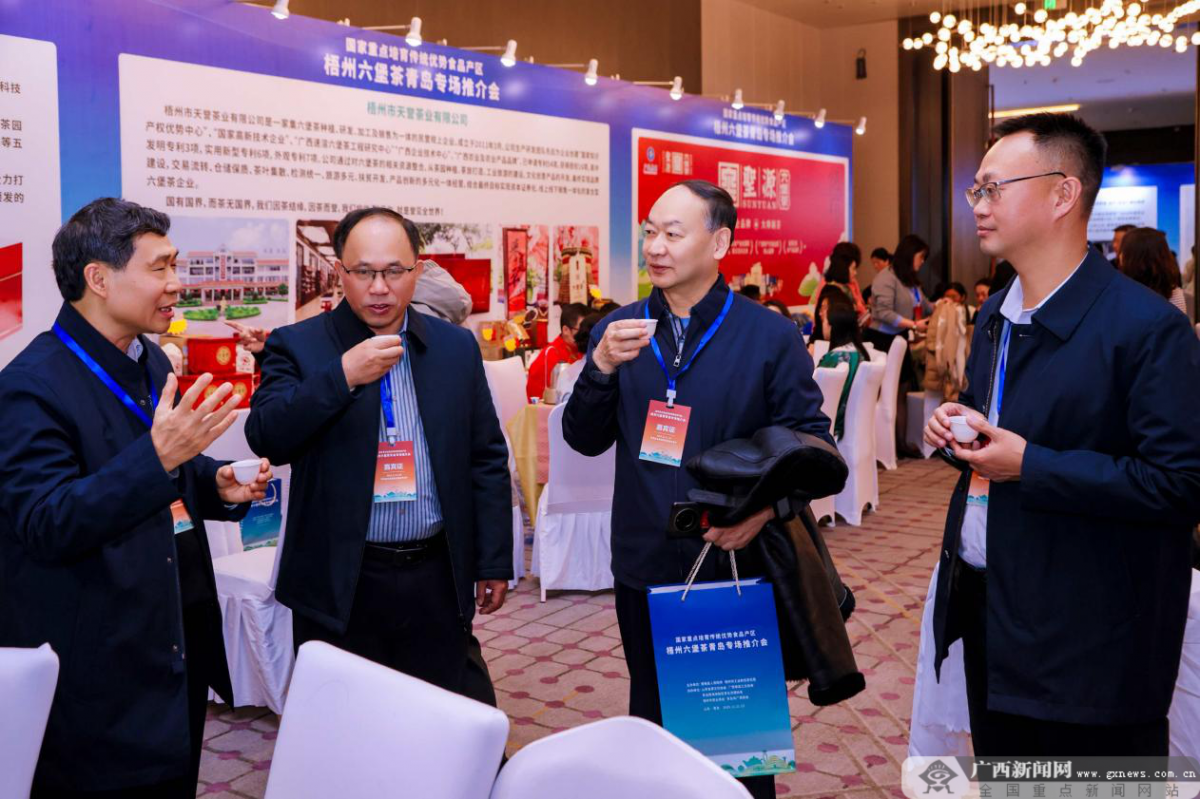 與會嘉賓品鑒六堡茶。 本次推介會的成功舉辦,是梧州市推動茶產業轉型升級的重要實踐。通過產業鏈思維重塑發展模式,以市場化手段推動品牌建設,促進六堡茶產業從傳統農產品向消費名品轉型升級。