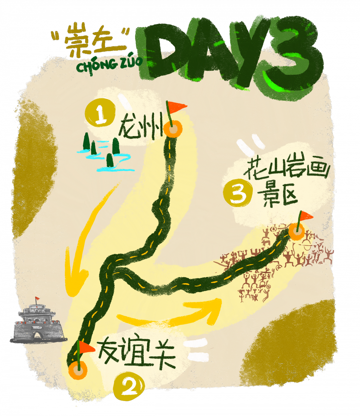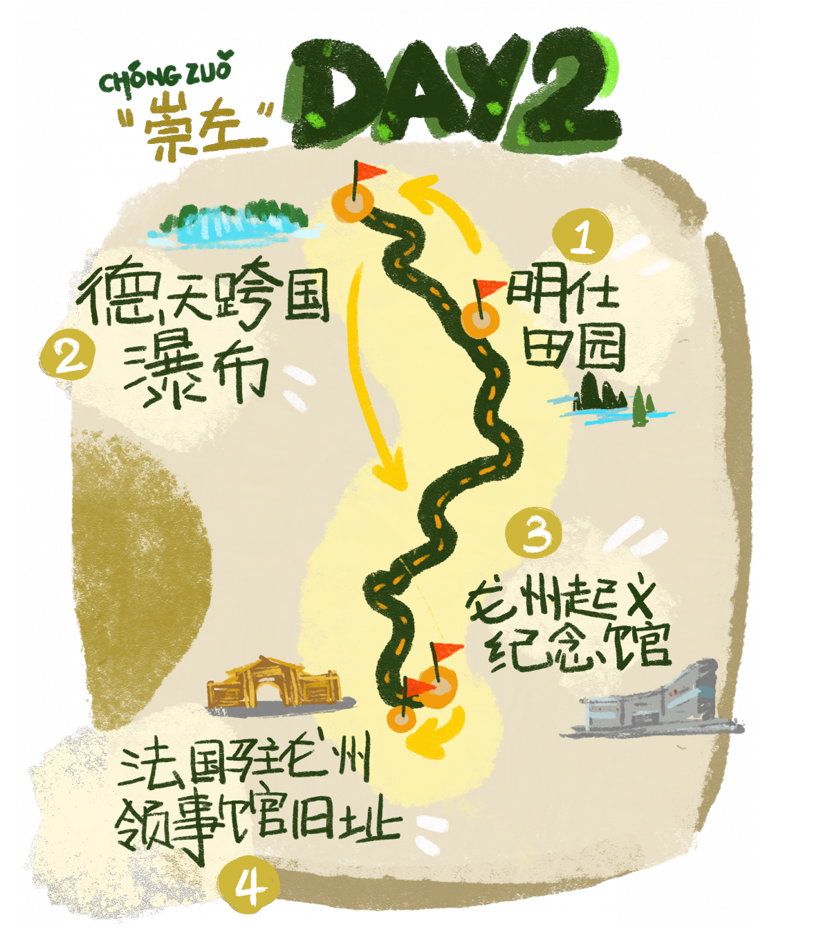 11月的廣西 帶著點初冬的涼意 又夾雜著幾日暖陽 不時傳來“入冬失敗”的消息 那就選一個舒服的好天氣 去崇左秘境 精神出逃一下吧 ▲視頻來源:文旅中國 「崇左田園詩歌游路線推介」 · 廣西| 崇左“游”點意思 · 行程:南寧(出發)→峒那嶼灣景區→明仕田園風景區→德天跨國瀑布景區→龍州起義紀念館→法國駐龍州領事館舊址→友誼關景區→寧明花山巖畫景區→南寧(回程) DAY1· 碧水田園中治愈身心 DAY2· 把跨國大瀑布玩透徹 DAY3· 看看“斷崖上的敦煌”