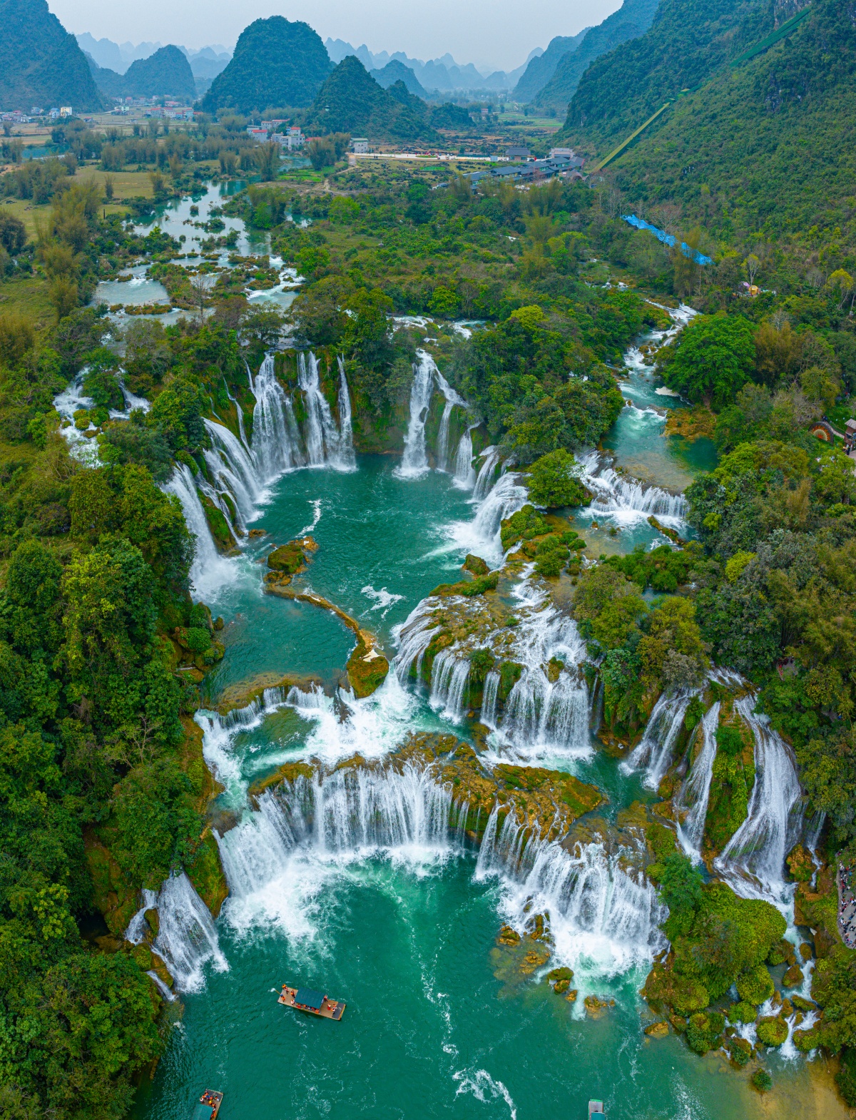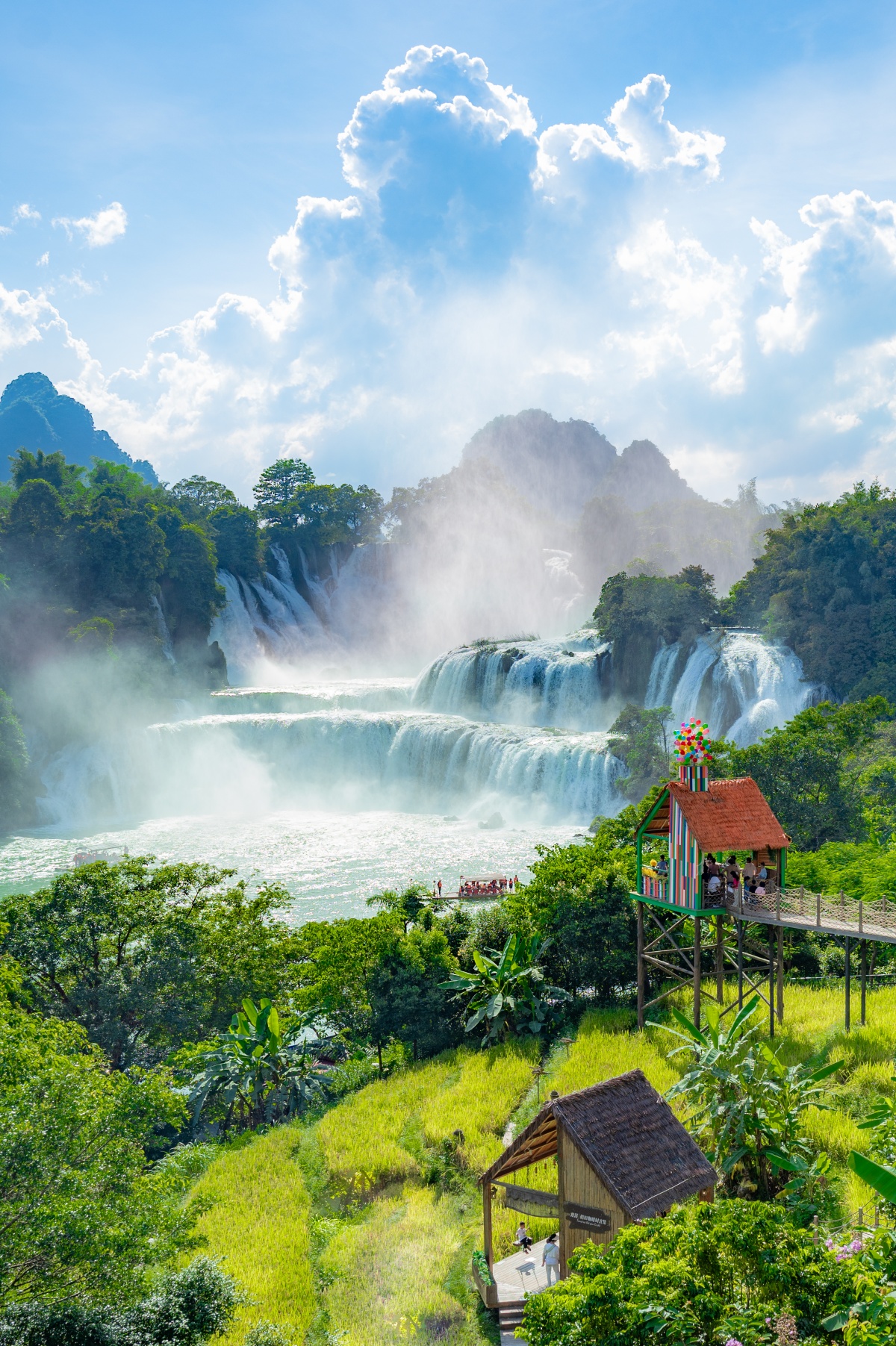 「行程建議」 上午 一早從明仕田園悠然景色中醒來,早餐后駕車前往德天跨國瀑布景區,耗時約30分鐘。 【友情提醒】目前瀑布還處于豐水期,不用太擔心水量問題。在游客集散中心附近需換乘擺渡車進入,建議中午到達,這個時段瀑布水量最佳,景色壯觀。 ▲視頻來源:廣西云-廣西日報 德天跨國瀑布是亞洲第一大、世界第四大的跨國瀑布,橫跨中國與越南兩國,整體寬度達200多米。