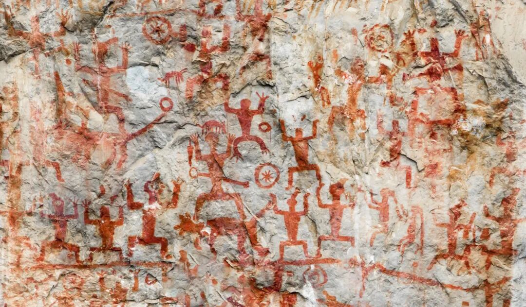 ▲寧明花山巖畫。黃文偉 攝 據推測,左江花山巖畫由壯族先民駱越人繪于戰國到東漢時期,已有2000多年的歷史。 這里有世界上單體最大、保存最完好的一處巖畫,總長約200米、高約40米、面積約8000平方米。