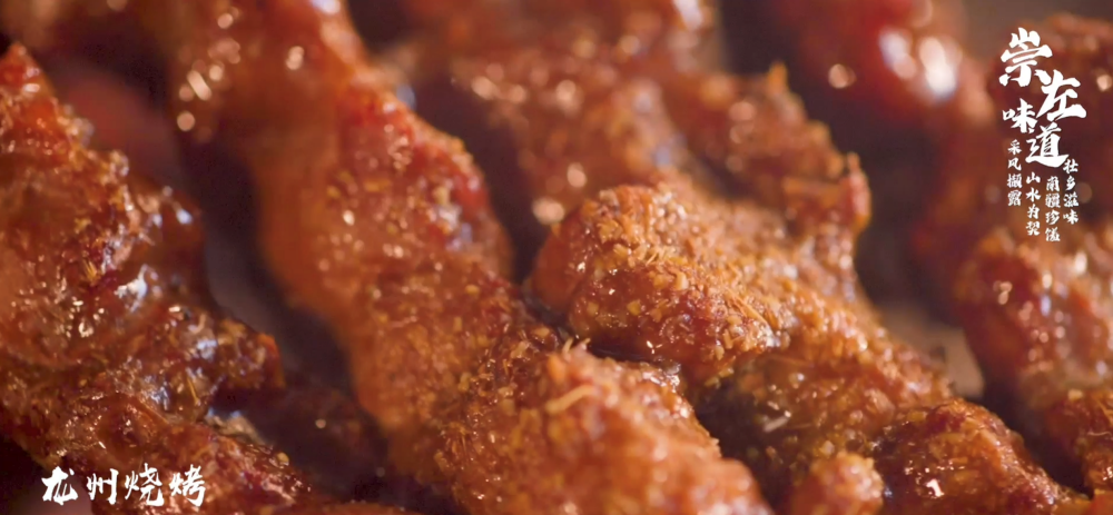 ▲龍州烤鳳尾(即去掉腺體的雞屁股)。圖源:龍州縣文化旅游和體育廣電局 這里的燒烤,吃法也小眾,醬料并不直接刷在烤串上,將簽子拔掉,燒烤蘸著秘制的黃皮果青檸醬或酸辣汁吃。
