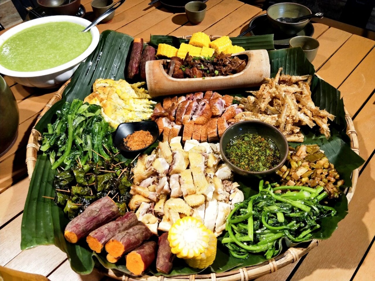 ▲圖源:大新明仕旅游度假區 暮色中,在明仕田園周邊找一家餐廳,吃上香迷糊的炭火烤豬、假蔞包肉,鮮嫩肥美的河鮮和豐富的土司宴。
