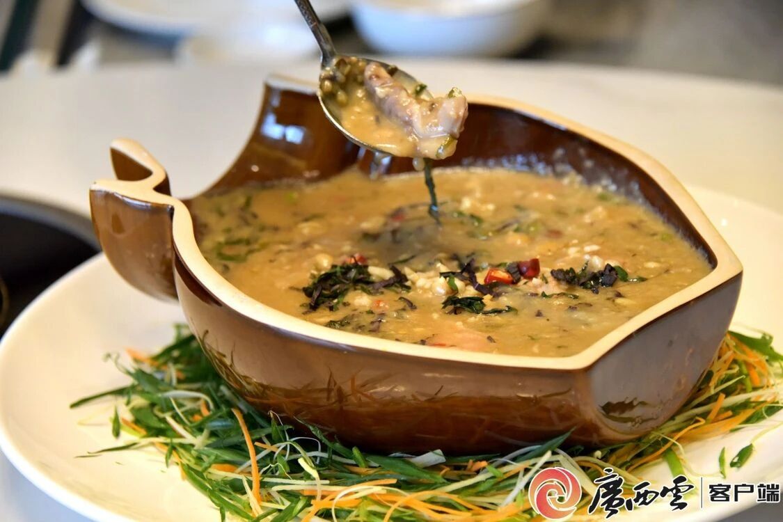 ▲誘人的酸粥豬肚。圖源:寧明縣融媒體中心 酸粥又稱酸糟粥,在崇左江州區、扶綏縣、寧明縣、大新縣、龍州縣等多個地區流傳。有人說它是“黑暗料理”,要不先試試看再說?