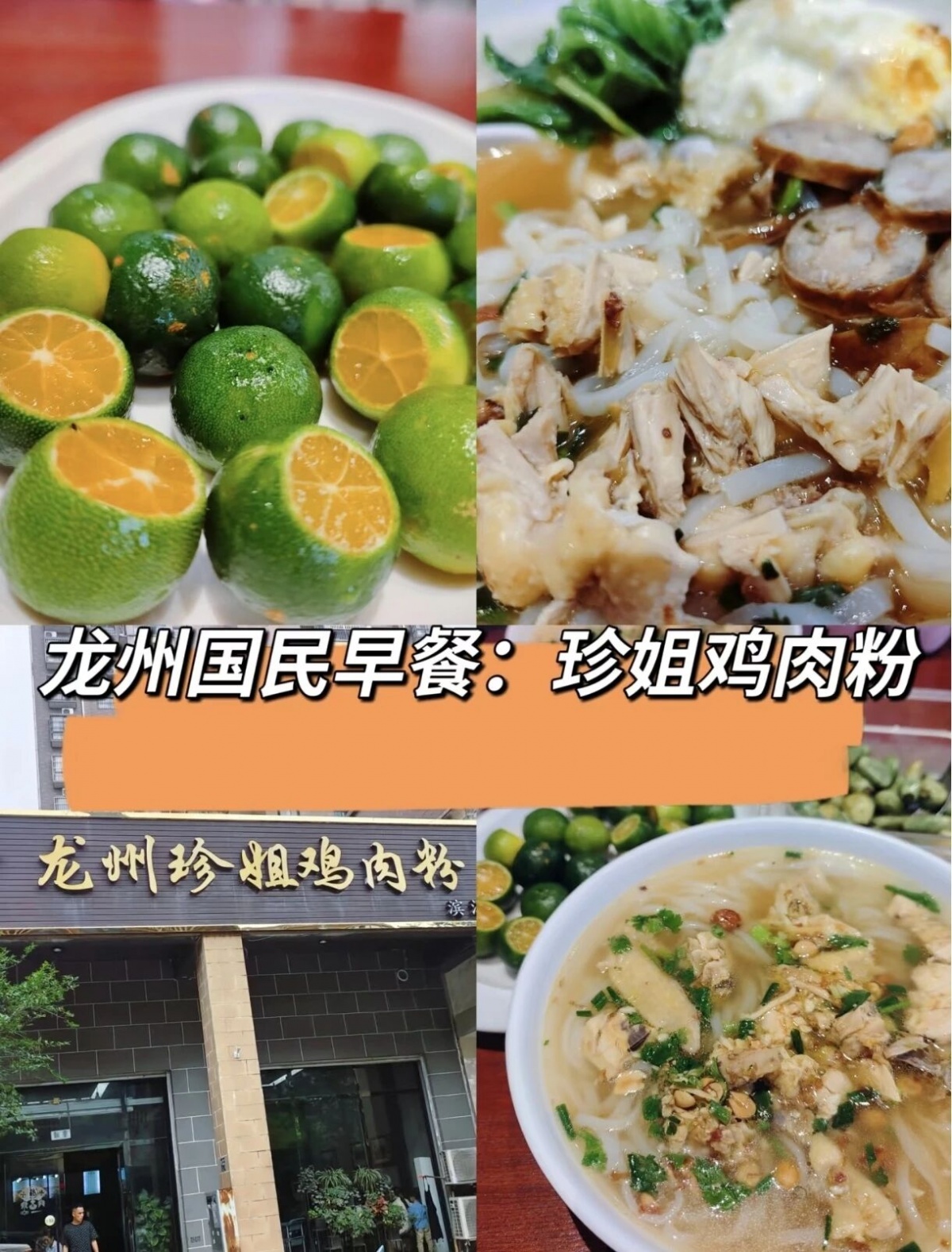 「行程建議」 上午 早上不著急趕往下一站,先去打卡龍州當地的招牌美味——龍州珍姐雞肉粉。