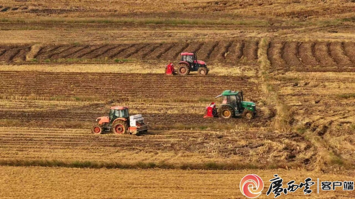 播種機在勞作。曾河力 攝 眼下正值冬種時節,近日,港北區慶豐鎮搶抓晴好天氣,充分盤活冬季閑置土地資源種油菜花,在新圩村滿地樂種養專業合作社優質稻高產創建示范基地,只見5臺播種機在田間來回穿梭,同步完成起畦、施肥、點種等系列作業,基地內,工人們各司其職、默契配合,田間地頭一派繁忙有序的勞作景象。 “我們基地總占地500畝,今年采用‘雙季稻+冬閑田種植油菜花’的一年三收模式,讓土地全年不閑置。” 滿地樂種養專業合作社負責人覃敏超向記者介紹,此次冬種油菜花作業將持續一周,經過精心管護后,預計來年三月份即可迎來豐收,預估畝產油菜籽200至300斤。 冬種油菜花,不僅能有效提升土地利用率、讓閑置冬閑田“活”起來,更為產業提質、農戶增收注入新動能。“油菜花的用途十分廣泛,嫩莖葉可作為蔬菜食用,成熟菜籽能加工成菜籽油,花期過后的秸稈還可以當作天然綠肥用于還田,有效提升土壤肥力,為來年水稻種植減少施肥成本。” 覃敏超說。 據了解,該基地實行統一耕種、統一管理的模式,通過機械化作業與科學種植相結合,既降低了生產成本,又保障了作物產量和品質。500畝油菜花的成功種植,不僅為慶豐鎮增添了一道冬日風景線,更將帶動農業增效、農民增收,為區域農業可持續發展注入新活力,助力鄉村振興提質增效。 |