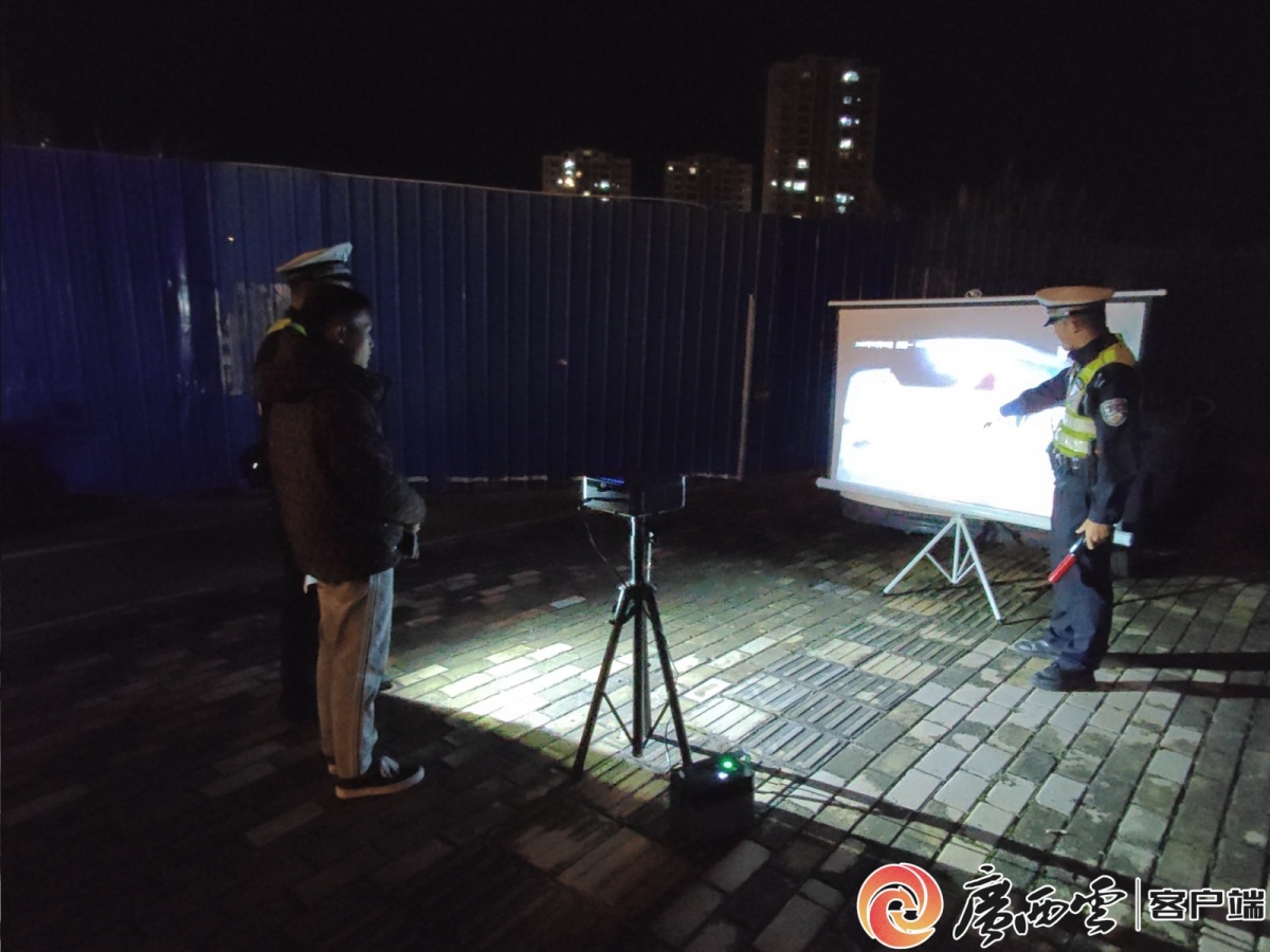 貴港交警:“移動夜校”進卡點 交安普法“一對一” |