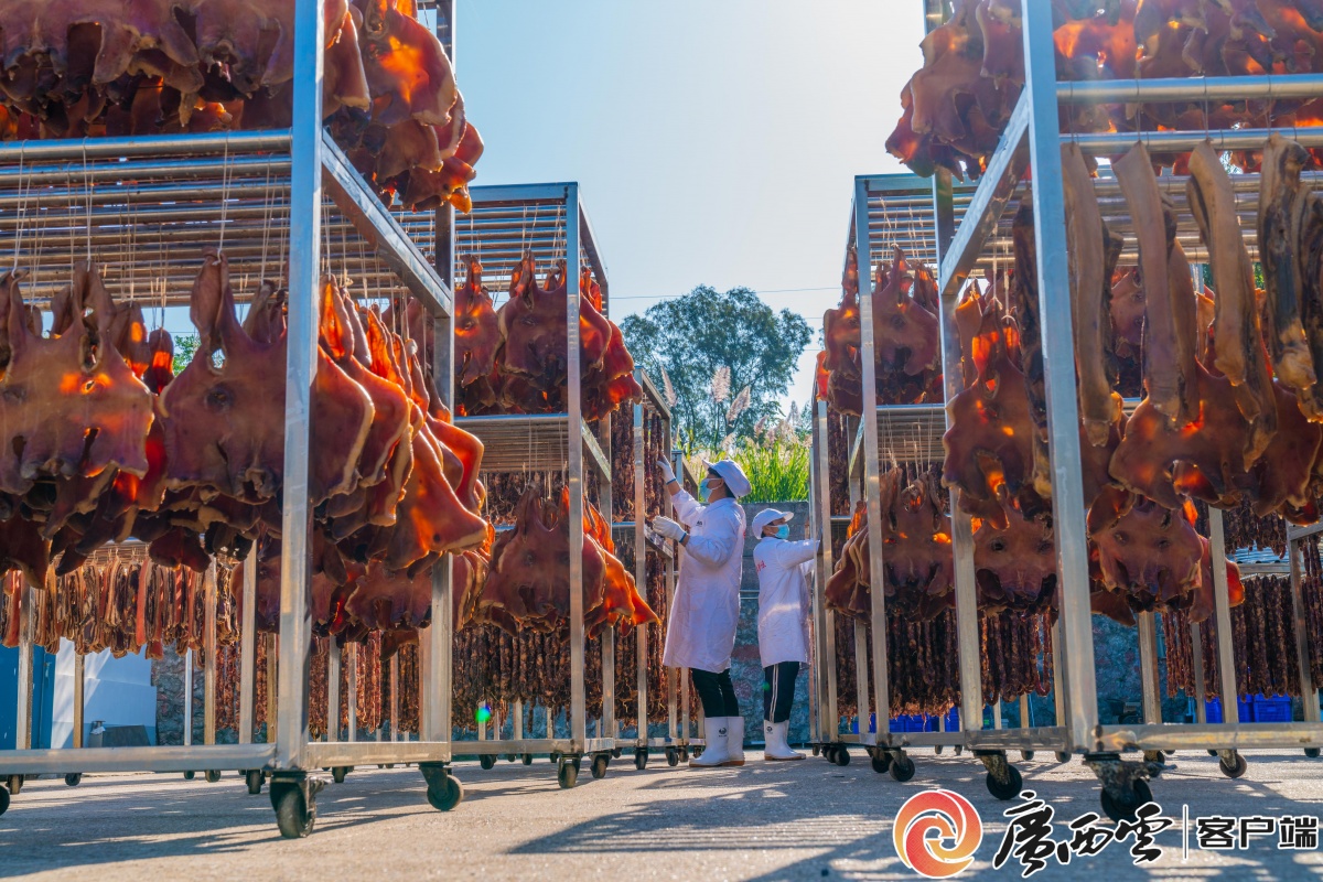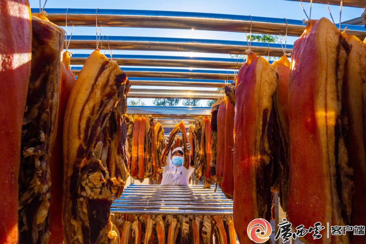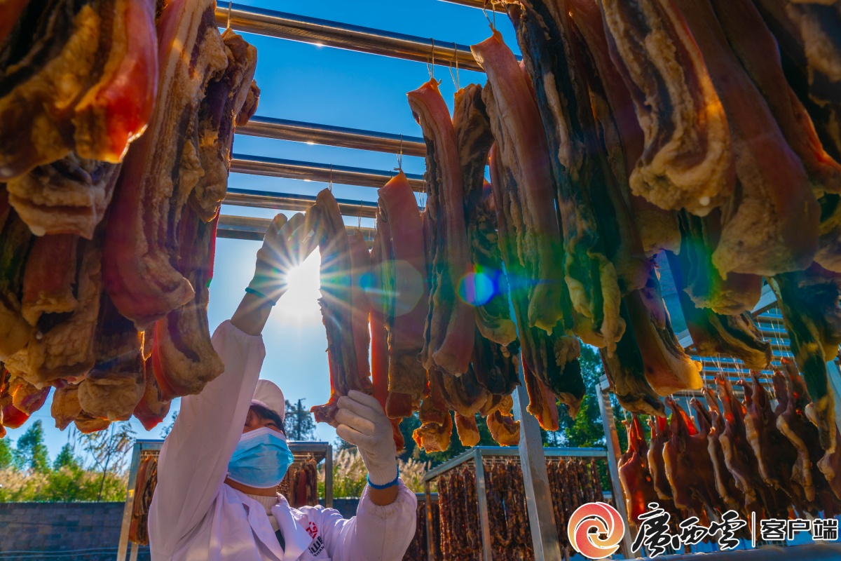 初冬時節,臘味制作進入高峰期,當地村民正忙著腌制、晾曬臘味。近年來,金秀瑤族自治縣注重對傳統臘味市場的培育與管理,讓小臘味成為大產業。當地的臘味制作不僅延續選材、腌制、晾曬、熏烤等傳統環節,更注重融入現代生活和市場需求,不斷提升傳統臘味的加工環節與銷售渠道,形成了一條從養殖、加工、線上線下銷售的特色產業鏈,將產品銷往全國,帶動眾多群眾在家門口就業、創業,增收致富。