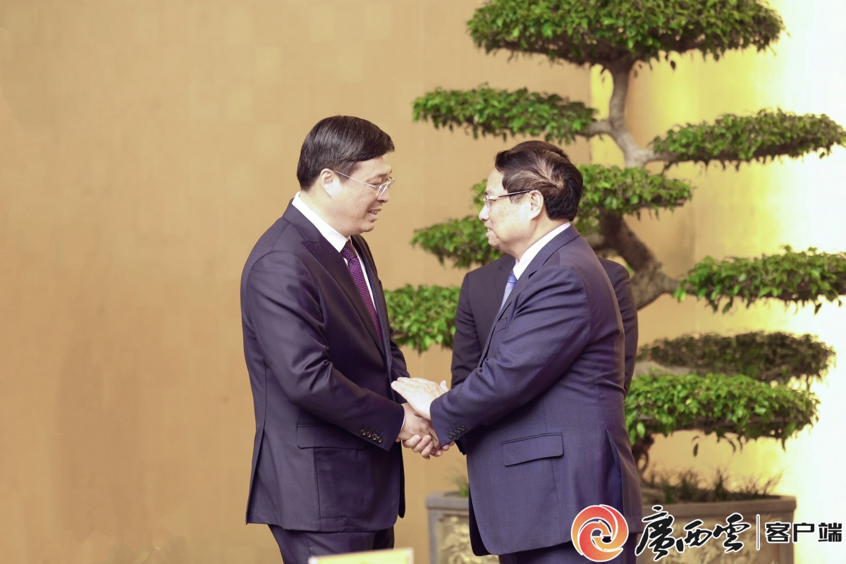 11月25日至27日,自治區主席韋韜率廣西政府代表團訪問越南。越南總理范明政在越南河內接見廣西代表團。廣西云-廣西日報記者 鄧華 攝 廣西廣播電視臺《廣西新聞》報道。 訪問期間,越南總理范明政與代表團舉行了工作會談。越共中央書記處書記、外交部部長黎懷忠會見了代表團。越方領導人指出,鞏固和發展對華友好關系始終是越南對外政策的一貫主張、客觀要求、戰略選擇和頭等優先,稱贊廣西在越中關系中具有特殊地位和重要作用。越南與廣西山水相連,友好交往源遠流長,交流合作密切。今年以來,廣西黨政主要負責同志先后率團訪越,充分體現了廣西對深化與越南各領域合作的高度重視。越南各部委、省市要同廣西落實兩黨兩國領導人達成的重要共識和兩國《聯合聲明》,進一步提升政治互信,加強戰略對接,積極主動開展經貿投資、互聯互通以及人工智能、數字經濟、綠色發展、清潔能源等新興領域務實合作,深化越南五省市與廣西黨委書記新春會晤和聯工委會晤機制,加強人文交流,攜手構建具有戰略意義的越中命運共同體,為地區和平與繁榮作出積極貢獻。
