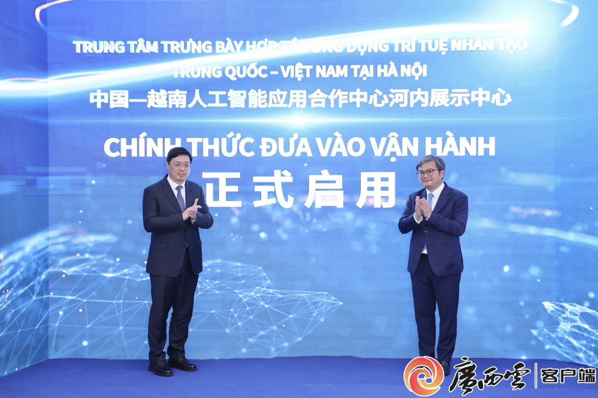 韋韜出席中國—越南人工智能應用合作中心河內展示中心揭牌儀式。廣西云-廣西日報記者 鄧華 攝 在越期間,代表團出席了廣西文化旅游科技周啟動儀式,參觀了“胡志明主席與廣西”圖片展、AI智能互動體驗區、非遺美食展,并與越南留學生代表交流互動;出席了2025中國(廣西)—越南經貿合作對接活動,以中國—東盟自貿區3.0版升級議定書簽署為契機,聚焦“共享區域統一大市場,共建高效便捷暢通的產業鏈供應鏈”主題,推動與越方加快建設中越智慧口岸、跨境經濟合作區,共同推進人工智能國際合作;出席中國—越南人工智能應用合作中心河內展示中心揭牌儀式,推動與越方在模型研發、算力協同、產業對接等領域務實合作,加快人工智能在農業、制造、交通、文旅等領域的場景應用,打造中越人工智能合作的示范窗口;見證北部灣港—海防港煙花精品航線首航、中越友誼關—友誼智慧口岸貨運專用車道工程竣工以及中國電子產業發展(廣西)公司等多家中國企業與越南京北集團共建中越電子信息產業園等合作協議簽署。 代表團瞻仰了胡志明陵并敬獻花圈,參觀胡志明博物館和故居,深切懷念中國人民的親密朋友胡志明主席,賡續中越傳統友誼。 中國駐越南大使何煒,越南中央戰略政策部副部長、越中友協主席阮黃英,文體旅游部副部長黃道疆,越南祖國陣線中央委員會副主席、越南文聯主席杜紅軍,河內市人委會副主席張越勇,自治區政府秘書長鐘得志,廣西政府代表團成員,防城港、百色、崇左市和自治區有關部門、企業負責同志等分別參加有關活動。 |