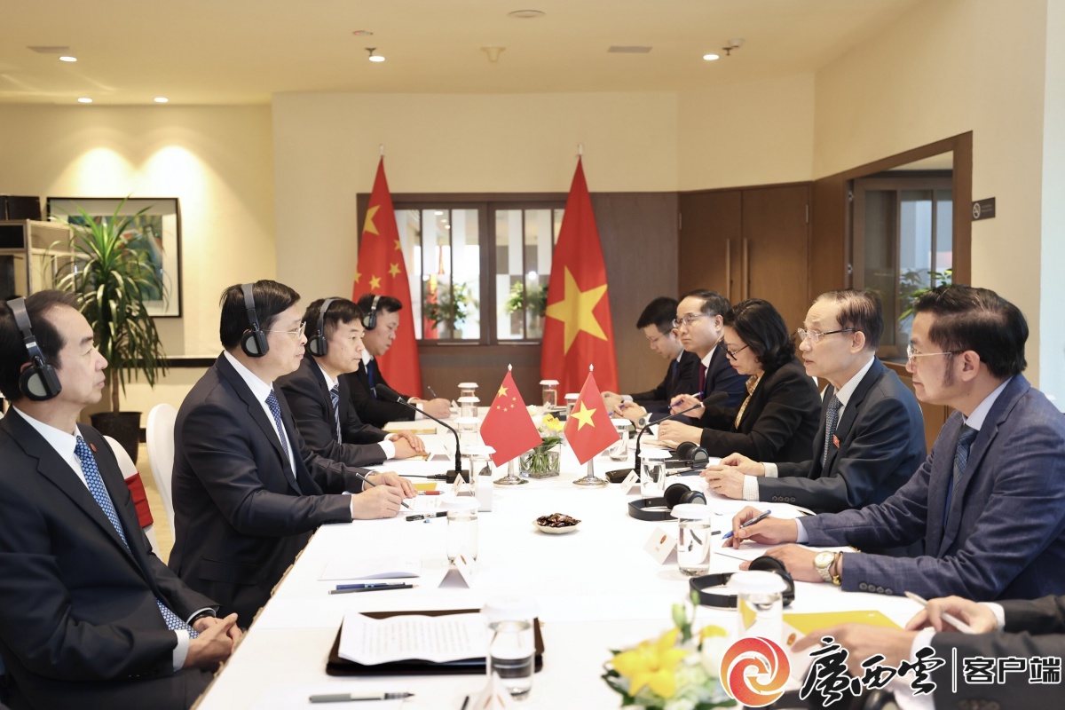 韋韜在越南河內拜會越共中央書記處書記、外交部部長黎懷忠。廣西云-廣西日報記者 鄧華 攝 韋韜誠摯祝賀近年來越南經濟社會發展取得的一系列成就,對近期越南多地因遭受臺風洪澇災害造成人員傷亡和財產損失表示深切慰問。他說,中越兩國是山水相連的社會主義鄰邦,廣西與越南友好交流源遠流長,各領域務實合作取得積極進展。明年是對中越兩黨兩國各自發展具有關鍵意義的一年。中國將進入“十五五”開局之年,越南將迎來越共十四大召開。經過多年厚積薄發,廣西正迎來歷史最好發展時期,將認真落實兩黨兩國領導人達成的重要共識以及中越《聯合聲明》,聚焦中越關系“六個更”總體目標,從地方層面不斷深化同越南各領域友好交流合作,加快基礎設施互聯互通,提升跨境運輸效率,深化人工智能領域合作,攜手開展跨境產業合作和文旅、衛生、友城、安全等領域交流合作,為服務構建具有戰略意義的中越命運共同體貢獻廣西力量。 在越期間,代表團會見了越南工貿部部長阮鴻延、建設部部長陳紅明以及諒山省委書記黃國慶、人委會主席阮景全,海防市人委會主席黎玉州,太原省人委會主席王國俊,就深化人工智能、經貿投資、文化旅游、教育培訓、科技創新等合作交換意見。大家一致表示,廣西在中越關系和友好交往中具有特殊重要地位,在雙方貿易、互聯互通、產業鏈供應鏈合作等方面顯示出巨大發展潛力,深化桂越合作前景光明、未來可期。將在兩黨兩國領導人戰略引領下,落實好兩國關于共建“一帶一路”與“兩廊一圈”框架對接的合作規劃,加強產業鏈供應鏈合作,拓展人工智能、智慧口岸、教育培訓、文化旅游等領域交流合作,推動區域繁榮發展、更好造福兩地人民。