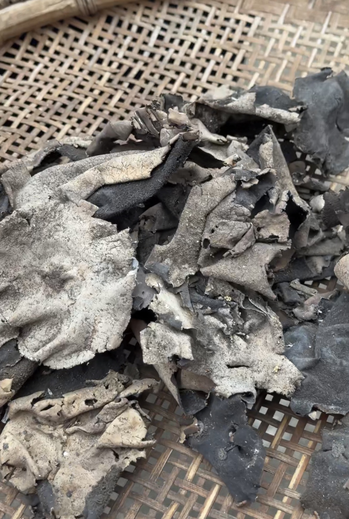 老易在石壁上采集的石耳。 在上山采藥的集合點前 老易的兩個徒弟已經在做準備工作