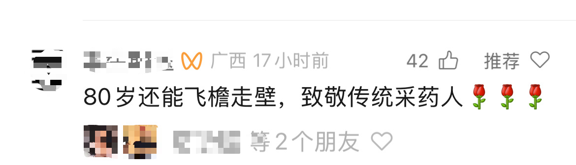 無數網友為堅守傳統技藝的采藥人點贊。 他們守著祖輩的古訓 護著自然界的平衡 在懸崖峭壁間代代相傳 這份堅守,無關名利 是一種與自然相守的默契 也是祖輩用生命沉淀的生存智慧 |