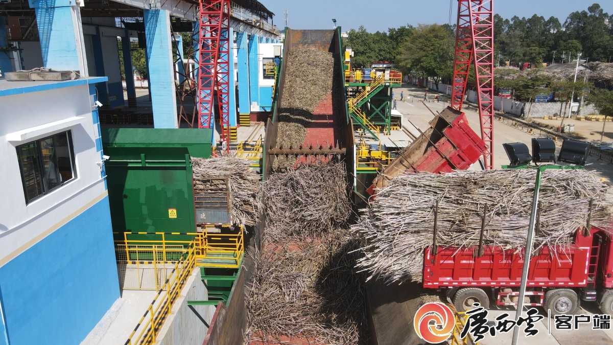 車輛正在卸載原料蔗。陸遠(yuǎn)培 攝 據(jù)了解,新投入使用的甘蔗自卸翻板除雜系統(tǒng)成效顯著。該系統(tǒng)通過將甘蔗除雜技術(shù)與自卸設(shè)備、輸送設(shè)備有機(jī)結(jié)合,實(shí)現(xiàn)了翻板自卸、輸送、除雜全流程自動(dòng)化操作,有效解決機(jī)械化收割原料蔗雜物過多的行業(yè)痛點(diǎn)。