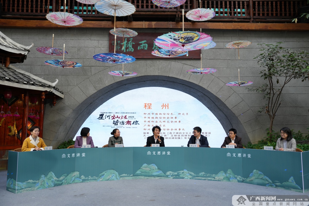 本次活動中,來自全國的唐宋八大家紀念地(館)代表參觀柳州市東門城樓。唐紹怡 攝 文惠講堂,專題座談會。唐紹怡 攝 11月23日,“中國群星閃耀時——唐宋八大家在新時代的啟示”系列活動迎來收官,來自全國的唐宋八大家紀念地(館)代表齊聚龍城,以文化為橋共話傳承,發布“柳州倡議”,為中華優秀傳統文化的當代傳播注入新活力。 本次活動是柳州市委宣傳部指導,由柳州市文化廣電和旅游局、中國柳宗元研究會聯合主辦,柳州市博物館協會、柳州市柳宗元文化研究會、柳州市博物館、四川省眉山三蘇祠博物館、廣東省潮州市古城文物保護管理中心(韓文公祠)、廣東省陽山縣韓愈紀念館、湖南省永州市柳宗元紀念館、江西省永豐縣博物館(歐陽修紀念館)、安徽省滁州市瑯琊山風景名勝區管理委員會(歐陽修紀念館)、江西省撫州市王安石紀念館、江西省南豐縣博物館(曾鞏紀念館)共同承辦。多方力量協同聯動,不僅匯聚了唐宋八大家紀念地(館)的核心資源,更構建起跨區域、多層次的文化交流合作。 八方翹楚聚龍城 共探傳承新路徑 眉山三蘇祠、永州柳宗元紀念館、永豐歐陽修紀念館、撫州王安石紀念館、南豐曾鞏紀念館等多家紀念館的代表齊聚柳州柳侯祠,以文化聯盟為紐帶,搭建跨區域交流平臺。此次活動特別邀請了中國柳宗元研究會資深學者與各紀念地(館)守護者,圍繞唐宋八大家精神的時代價值展開深度對話,從歷史源流、文化內涵到當代傳承,多角度解讀其思想精髓與現實意義。 “星河”的璀璨源于歷代無數學者、傳抄者、守護者的薪火相傳,更離不開每一位被中華文脈滋養的普通人的接續努力。這場跨越地域的文化之約,不僅解鎖了跨區域文化交流的新圖景,更凝聚起“百川赴海,共敘文脈”的傳承共識。 柳州倡議啟新程 攜手并肩添動力 作為本次活動的高潮環節,全國多家唐宋八大家紀念地(館)在現場聯合發布“柳州倡議”,以“開卷有益”的儀式感凝聚傳承共識,從資源整合、場景構建、協同發展三大維度,為唐宋八大家文化的當代傳承錨定清晰行動方向:融通八大家資源,共享史料、技術與成果,推動“文以載道、經世致用”精神融入當代,實現歷史遺產到當代智慧的轉化;共建“唐宋八大家文化走讀路線”,通過多館聯動的沉浸式體驗與研學活動,讓文化成為城市特色名片;建立館際常態化交流機制,在展覽、教育、人才領域協作,開發數字文化產品與文創,以“科技+文化”讓文脈貼近現代生活。