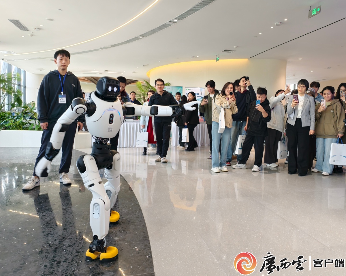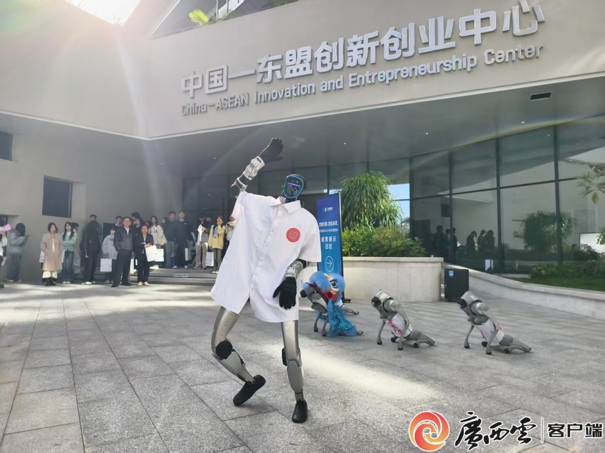 11月28日,南A中心中國—東盟創(chuàng)新創(chuàng)業(yè)中心大堂內(nèi),21家五象新區(qū)重點產(chǎn)業(yè)企業(yè)集中展示了“南寧一號”衛(wèi)星、機器人、無人機、芯片、新材料等31項核心技術產(chǎn)品、人才創(chuàng)新創(chuàng)業(yè)項目等成功,其中,節(jié)奏靈活舞動,時而與觀眾揮手互動的機器人成為全場焦點。