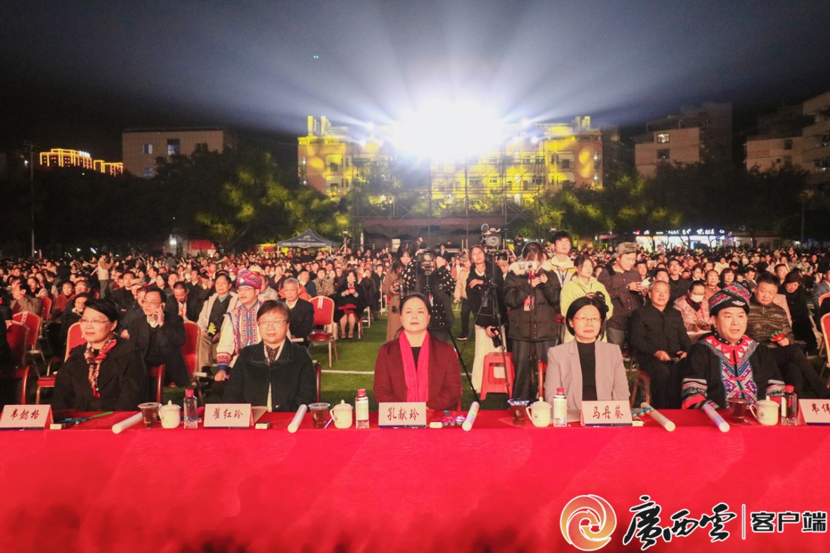 無伴奏混聲合唱《銅鼓》《瑤家月夜》。 河池市委常委、宣傳部部長、一級巡視員孔獻玲出席晚會。河池市人大常委會副主任馬丹葵,副市長翟紅玲,河池市政協副主席、廣西現代職業技術學院黨委書記韋偉松,河池市政協副主席韋懿格出席晚會。