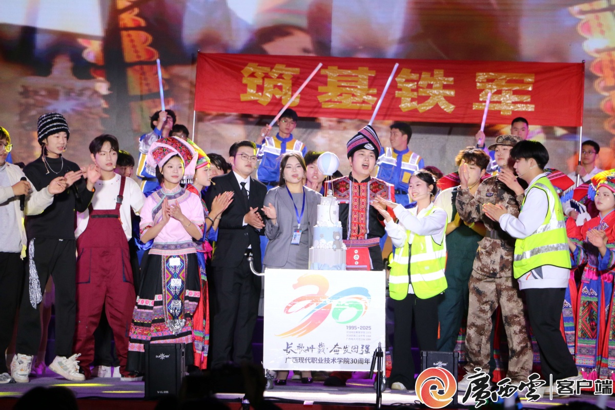 11月28日,廣西現代職業技術學院建校30周年高質量發展文藝晚會在金城江區舉行。整場晚會以“崢嶸歲月·勇立潮頭”“歌鄉神韻·綻放風采”“攜手奮進·逐夢未來”三個篇章層層遞進,將歌舞、合唱、小品等多種藝術形式巧妙融合。