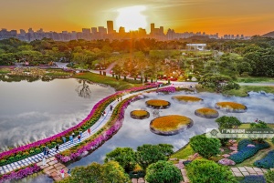 11月29日,在冬日暖陽中,來自四面八方的游客,在南寧市青秀山風(fēng)景區(qū)丘石花園內(nèi)欣賞菊花、異木棉等花卉,盛開的鮮花與城市樓宇交相輝映,顯得格外艷麗,成為一道非常靚麗的南國風(fēng)景線。記者 周軍 攝(廣西云-廣西日?qǐng)?bào))