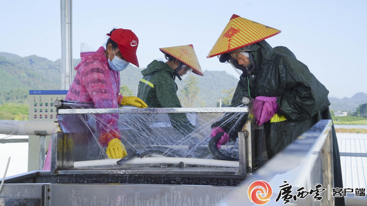 工人正在分揀鰻魚。 “這次大概一共銷售150噸左右,銷售額在1000多萬,每噸售價7萬塊。”據(jù)廣西閩樂生態(tài)農(nóng)業(yè)科技有限公司負責人池興樂介紹,現(xiàn)在大眾對鰻魚的接受力越來越強,以前百分之八九十靠出口,現(xiàn)在國內(nèi)市場和外銷各占一半,國內(nèi)市場還是比較廣闊的。 鰻魚對養(yǎng)殖的水質(zhì)和水溫要求苛刻,九萬大山優(yōu)質(zhì)的山泉水資源為其生長提供了優(yōu)質(zhì)的生長條件,生長周期縮短三分之一左右。該基地采用現(xiàn)代化養(yǎng)殖技術(shù),構(gòu)建“養(yǎng)殖供水—廢水處理—農(nóng)田灌溉”的生態(tài)閉環(huán)體系,從源頭保障鰻魚品質(zhì)。經(jīng)過近10個月的科學(xué)培育,鰻魚規(guī)格達標、肉質(zhì)緊實,順利進入市場。
