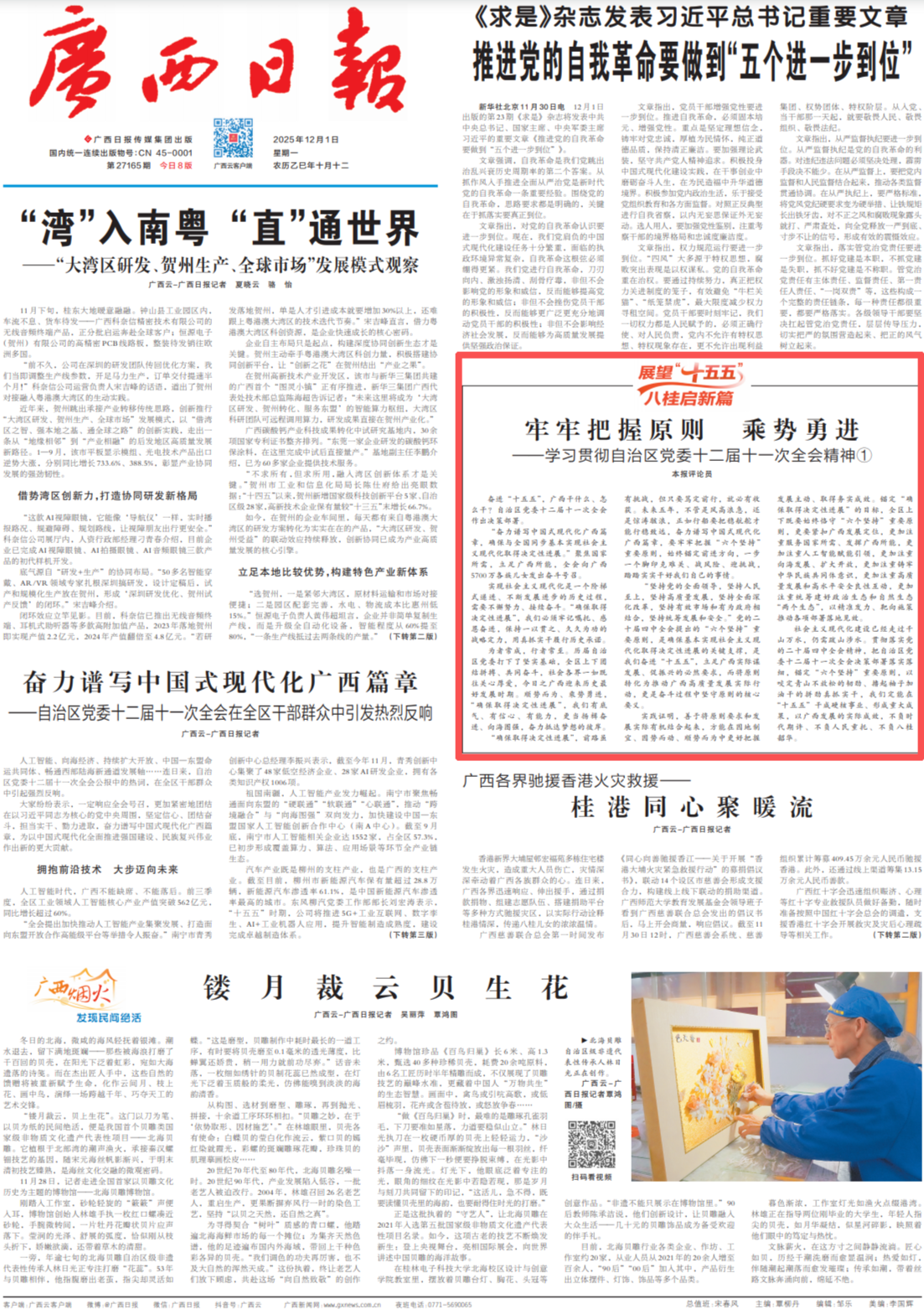 廣西日報評論員文章丨牢牢把握原則 乘勢勇進——學習貫徹自治區黨委十二屆十一次全會精神① |