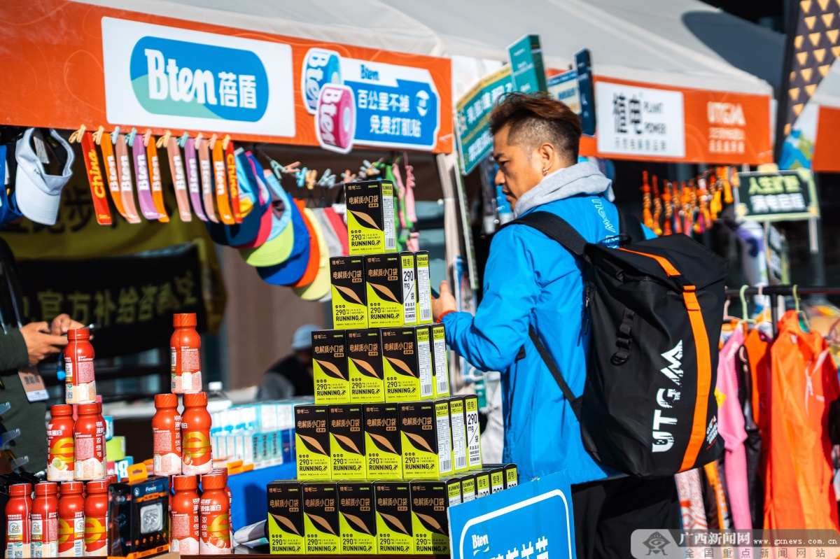 各CP點配備了完善的食品、醫療等保障。賽事方供圖 選手們的沉浸式體驗,既源于賽道的生態與人文賦能,更得益于本屆賽事對“越野生活方式”的立體化打造。 “在領取參賽包的時候看到有很多售賣體育用品的攤位,品類很全,我就買了肌貼、運動補劑等一些需要用到的東西,這是我第一次跑50公里,所以賽前就把準備做足。”來自柳州的參賽選手劉驥說。