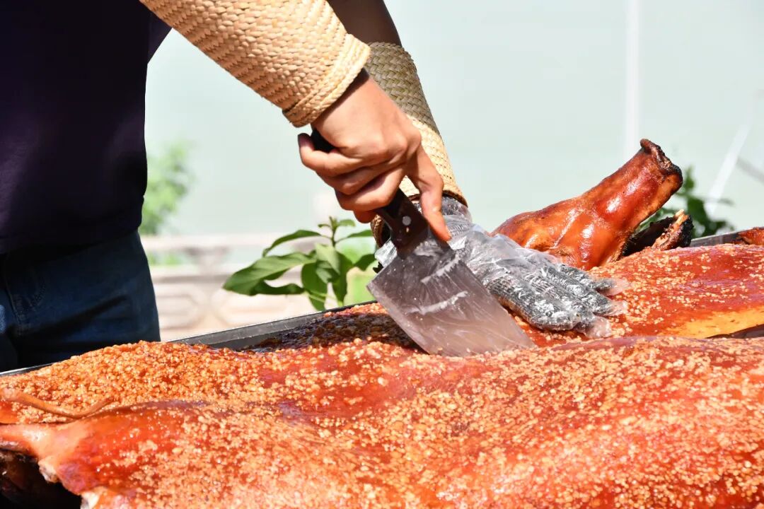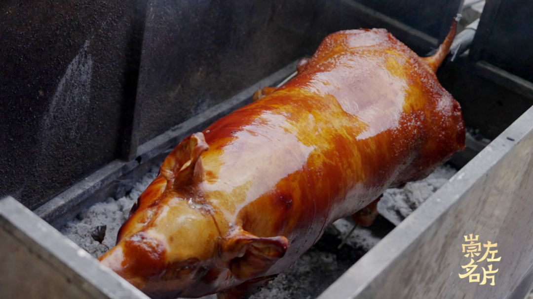 烹飪后的八角香雞,皮脆肉嫩,連骨頭都入味三分。圖源:寧明縣文化旅游和體育廣電局 除了八角香雞,還有我們的明江烤乳豬。