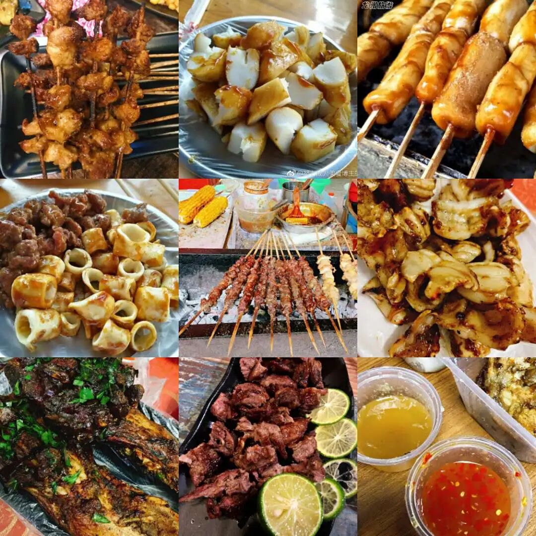 烤包。崇左市融媒體中心記者 馮泰蓮 攝 若是晚上想留宿龍州,那龍州燒烤一定要去試試!其食材豐富:粉利、雞鳳尾、豬天梯、豬寶蓋、豬大腸……口味融合了中越風味,酸辣清爽!