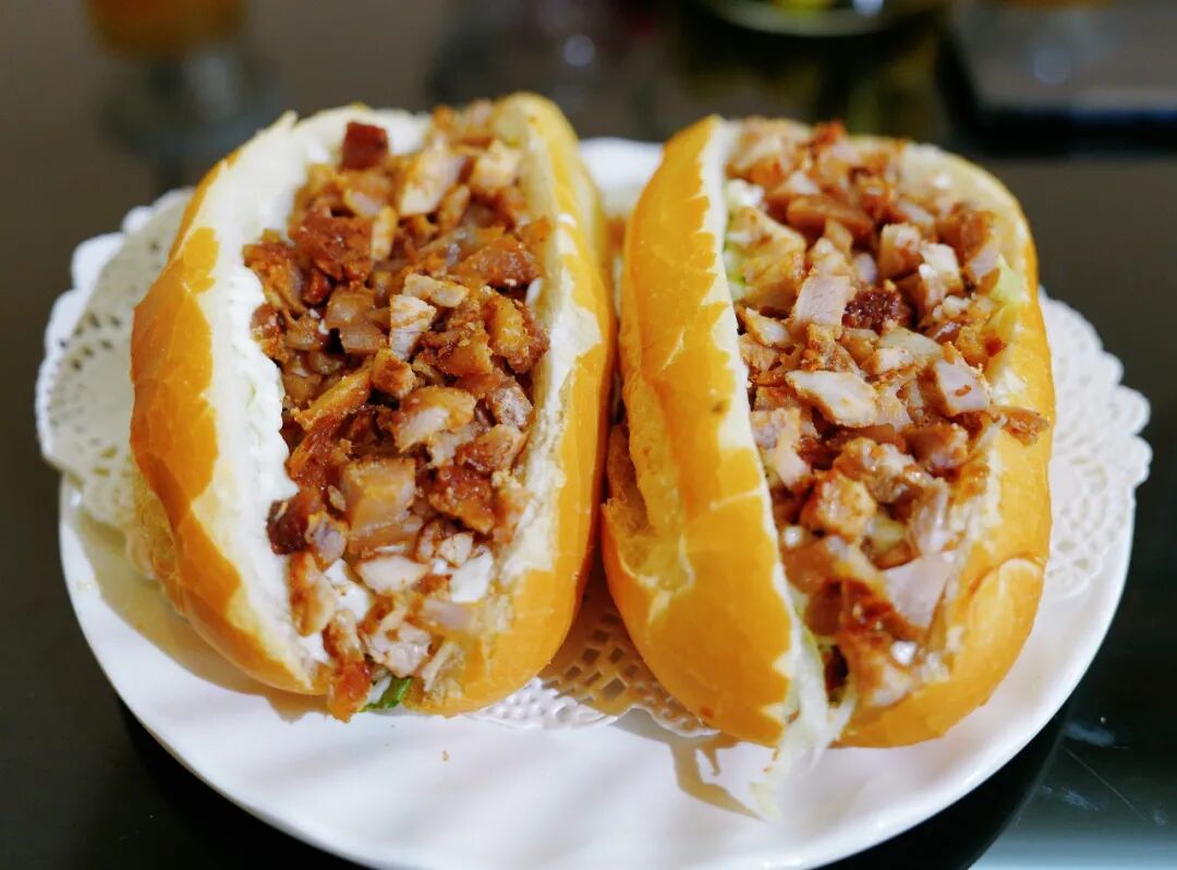 龍州雞肉粉。黃金妹 攝 再嘗嘗龍州烤包,外酥里嫩滿口留香。