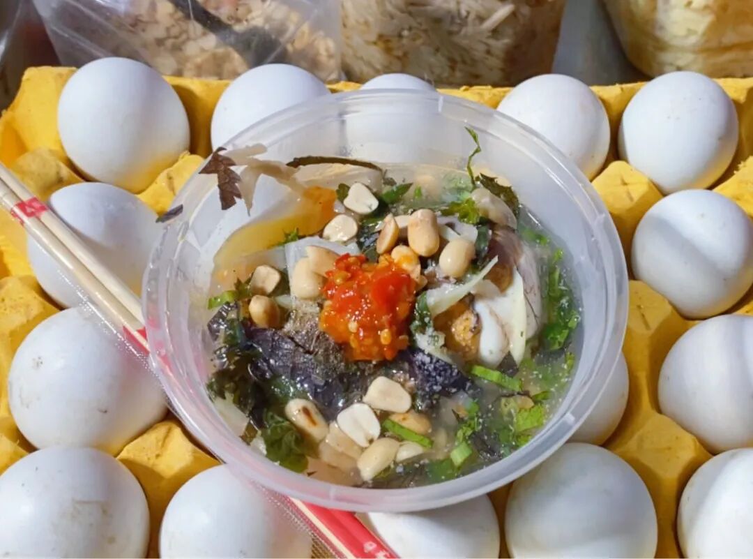 屈頭蛋用的是即將成形、未孵化出來的鴨蛋,混以薄荷、紫蘇、酸姜、酸木瓜等佐料制作而成,味道獨特,又香又酸又辣。張麗萍 攝 除此之外,越式春卷、越式涼拌粉、越式水果撈……眾多越南風味小吃隨處可見,讓你一秒穿越東南亞。