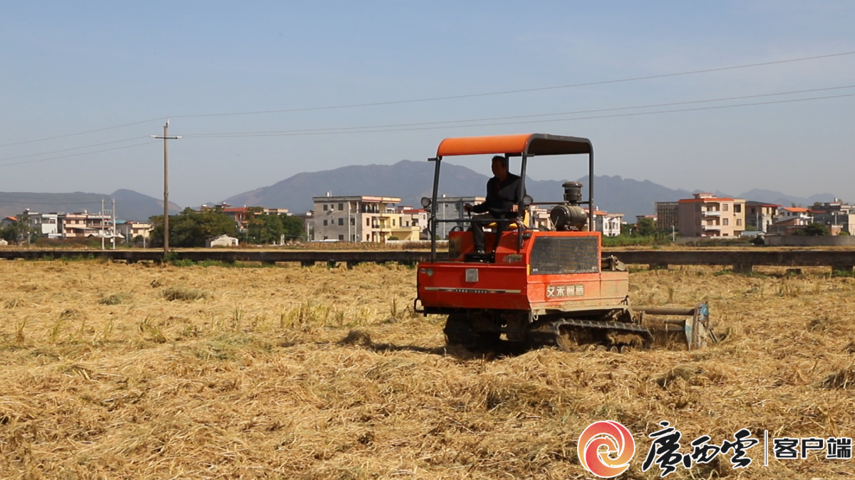 旋耕機下田粉碎秸稈,為播種做好準備。桂平市融媒體中心供圖