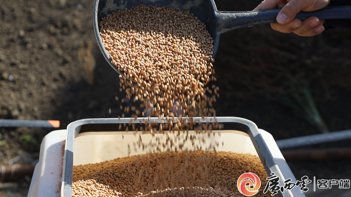 工人將麥子種植倒入無人機倉。桂平市融媒體中心供圖 這片500畝土地,正首次大規(guī)模實踐“稻—稻—麥”一年三熟輪作模式,讓往日的“冬閑田”煥發(fā)新生,成為提升糧食產(chǎn)量的“豐產(chǎn)田”。